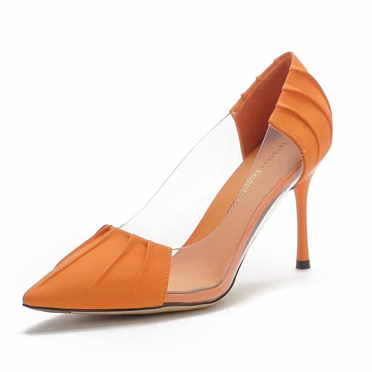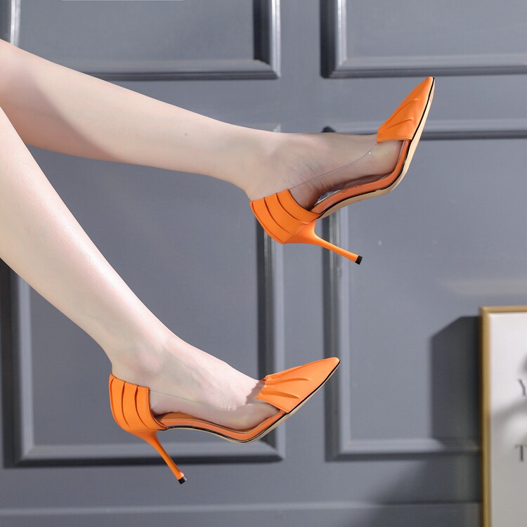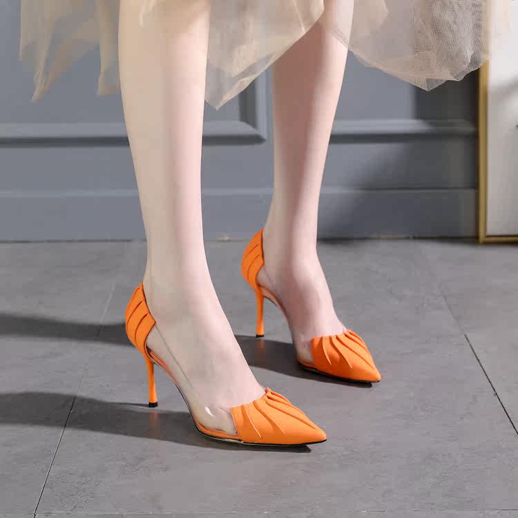 Дизайнерская летняя оранжевая универсальная обувь с заостренным носом на высоком каблуке, французский стиль, 2022 года