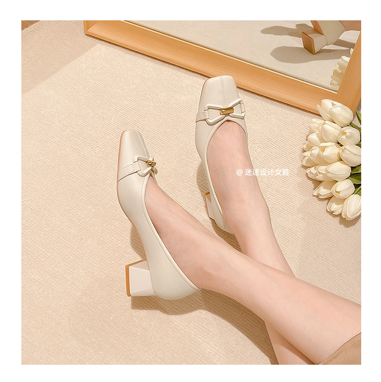 Бежевая небольшая дизайнерская обувь на высоком каблуке для кожаной обуви, французский стиль, 2023, тренд сезона