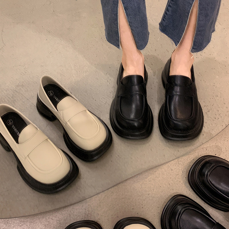 Обувь, черные высокие лоферы в английском стиле на платформе для кожаной обуви, французский стиль, коллекция 2022, в британском стиле, осенняя