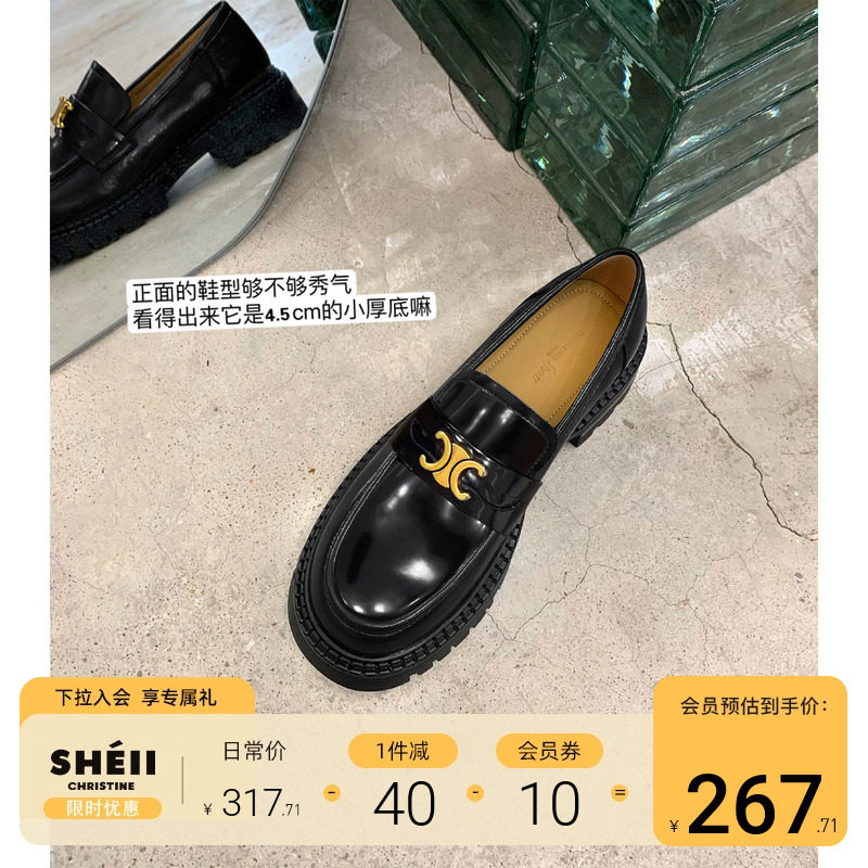 [sheii Su Yinyin] Закат в Торонто ~ Триумфальная арка, пряжка на толстой подошве, женские маленькие кожаные туфли без шнуровки «ленивый хлеб»