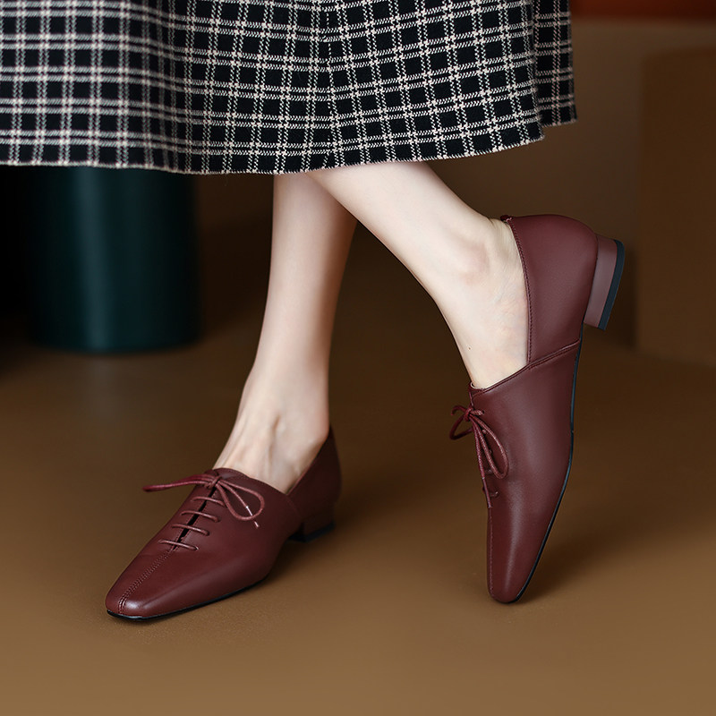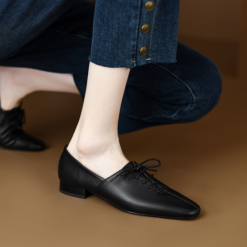 Fangtou Deep Roth Routh Кружечка низкие каблуки, маленькие кожа