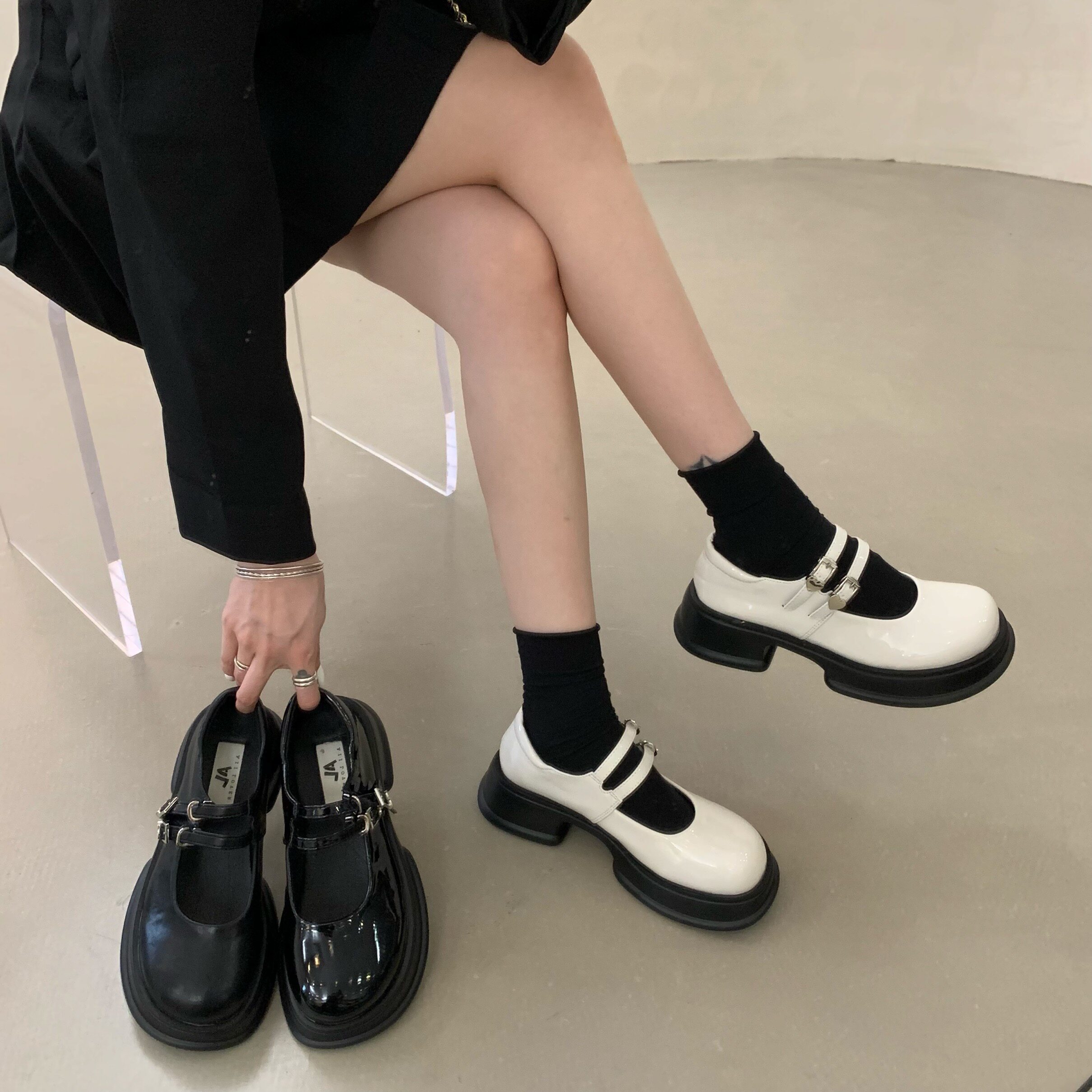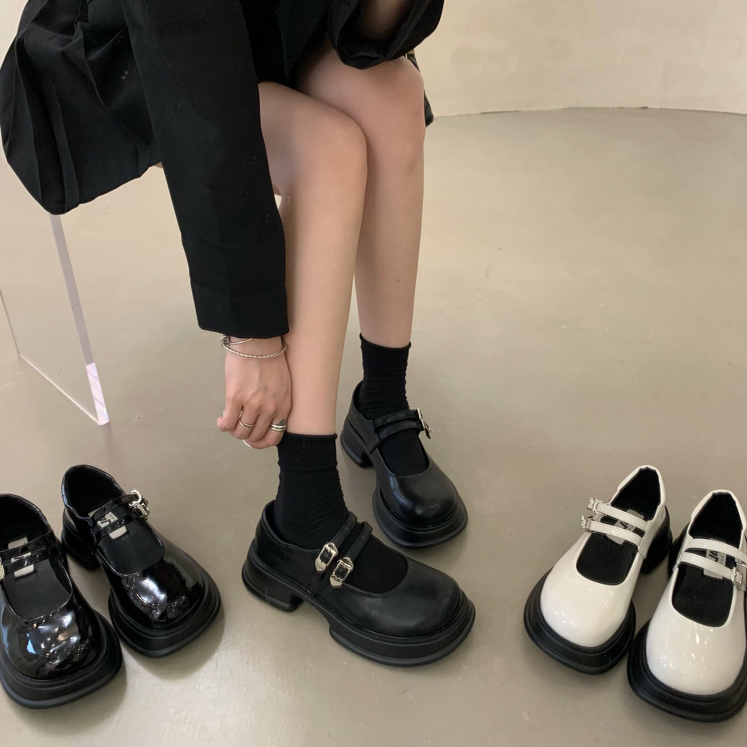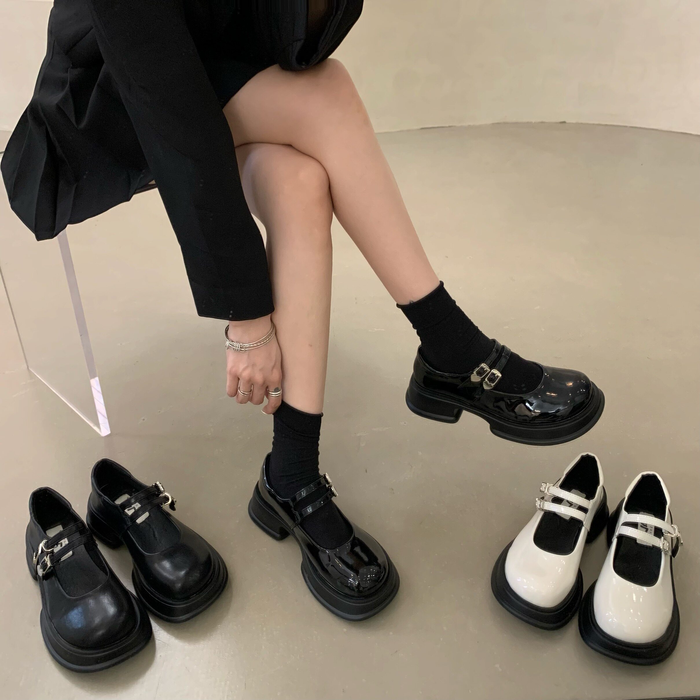 Весенняя черная обувь на платформе в английском стиле для кожаной обуви, коллекция 2023, в британском стиле