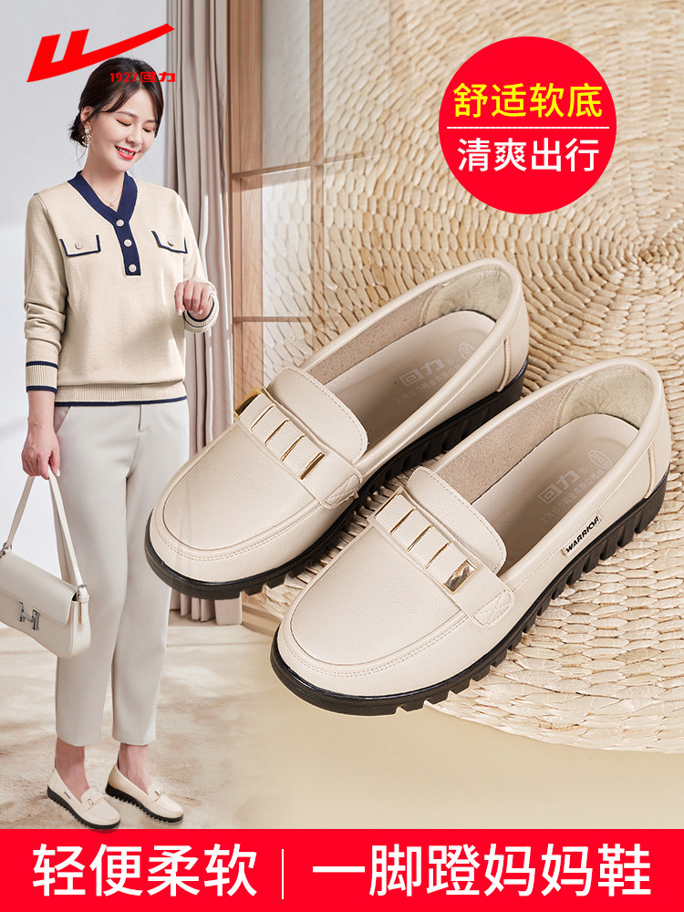Warrior, комфортная нескользящая обувь для матери для кожаной обуви, осенняя, для среднего возраста, мягкая подошва