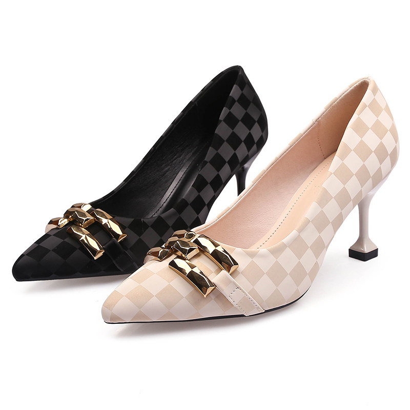 Светлые женские одиночные обувь 2022 летние новые заостренные кожуры ниша абрикосовые решетки с тонкими каблуками высокие каблуки