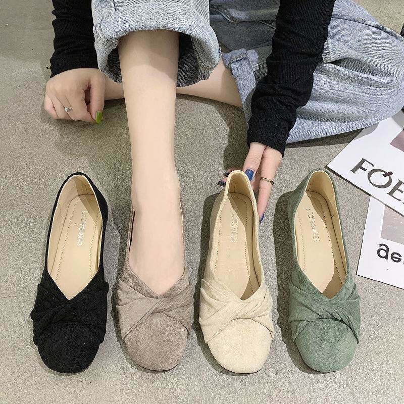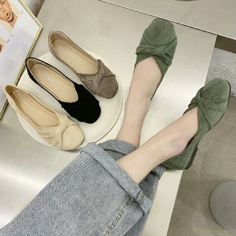 Одиночная обувь женская женская 2024 весна и осень Новое универсальное плоское дно, пиная низкие каблуки.