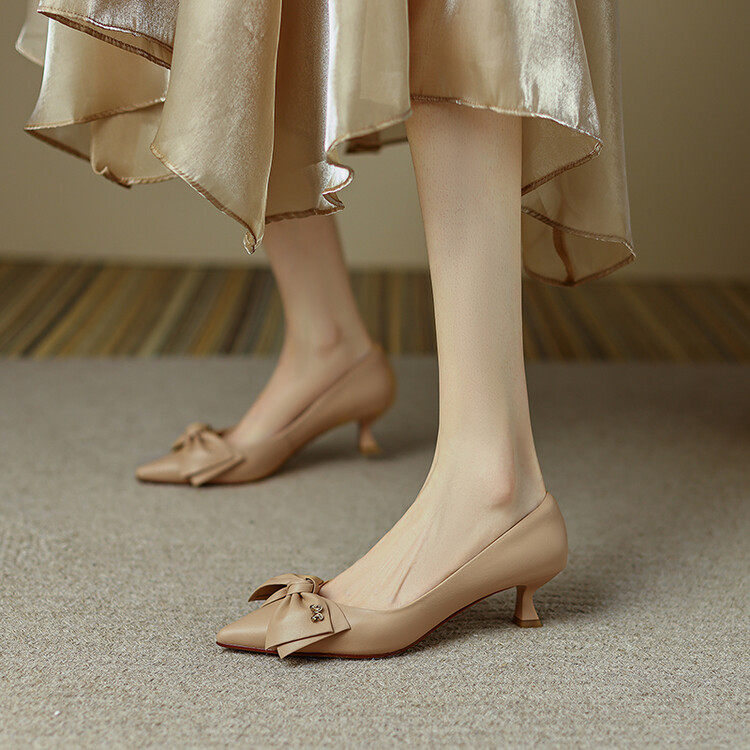 Обувь с заостренным носом на высоком каблуке, из натуральной кожи, 2024 года, осенняя, французский стиль