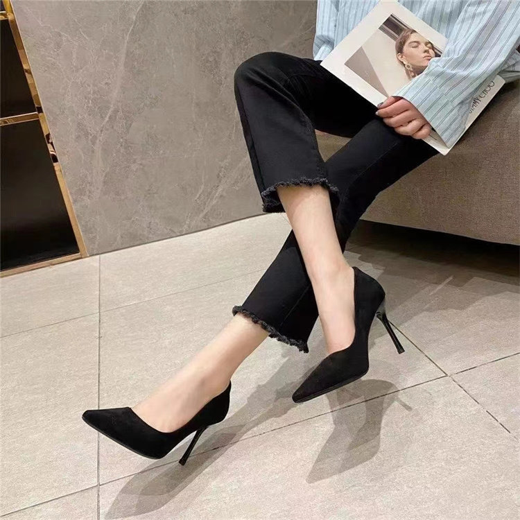 Черная сексуальная универсальная комфортная рабочая обувь на высоком каблуке, 2023, осенняя, тренд сезона