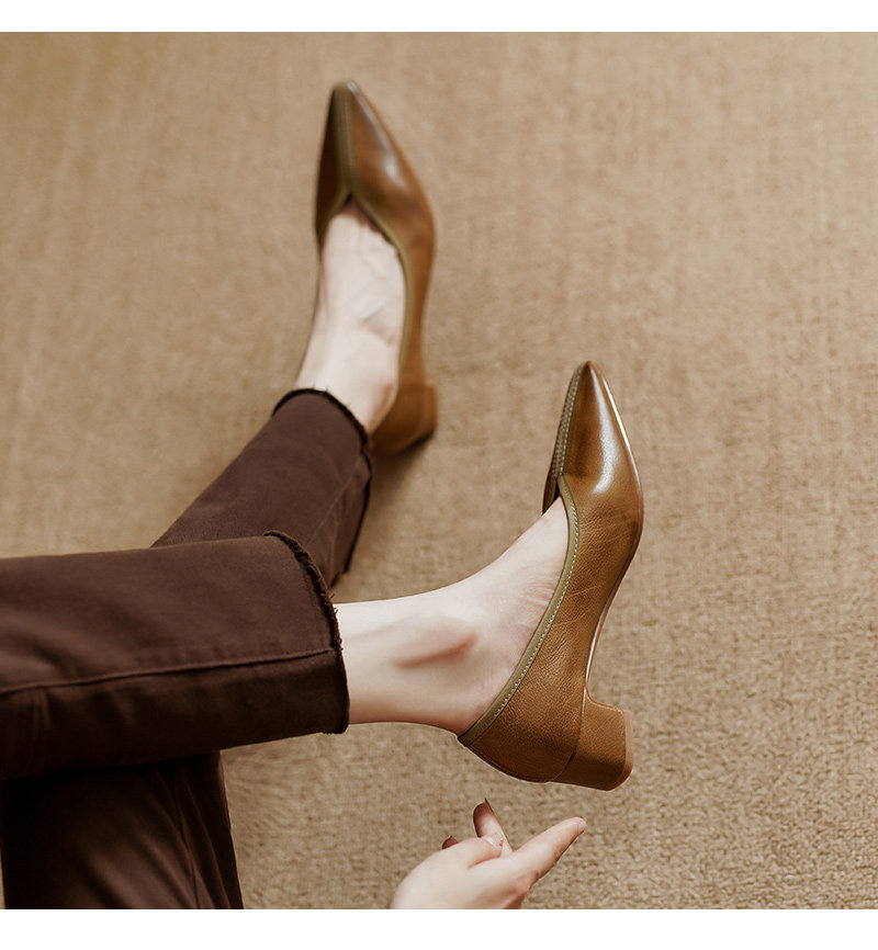 Туфли, обувь на высоком каблуке с заостренным носом, коллекция 2023, из натуральной кожи