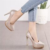 Сетчатая обувь на высоком каблуке, коктейльный банкетный водонепроницаемый слюнявчик, туфли, 2024 года, популярно в интернете