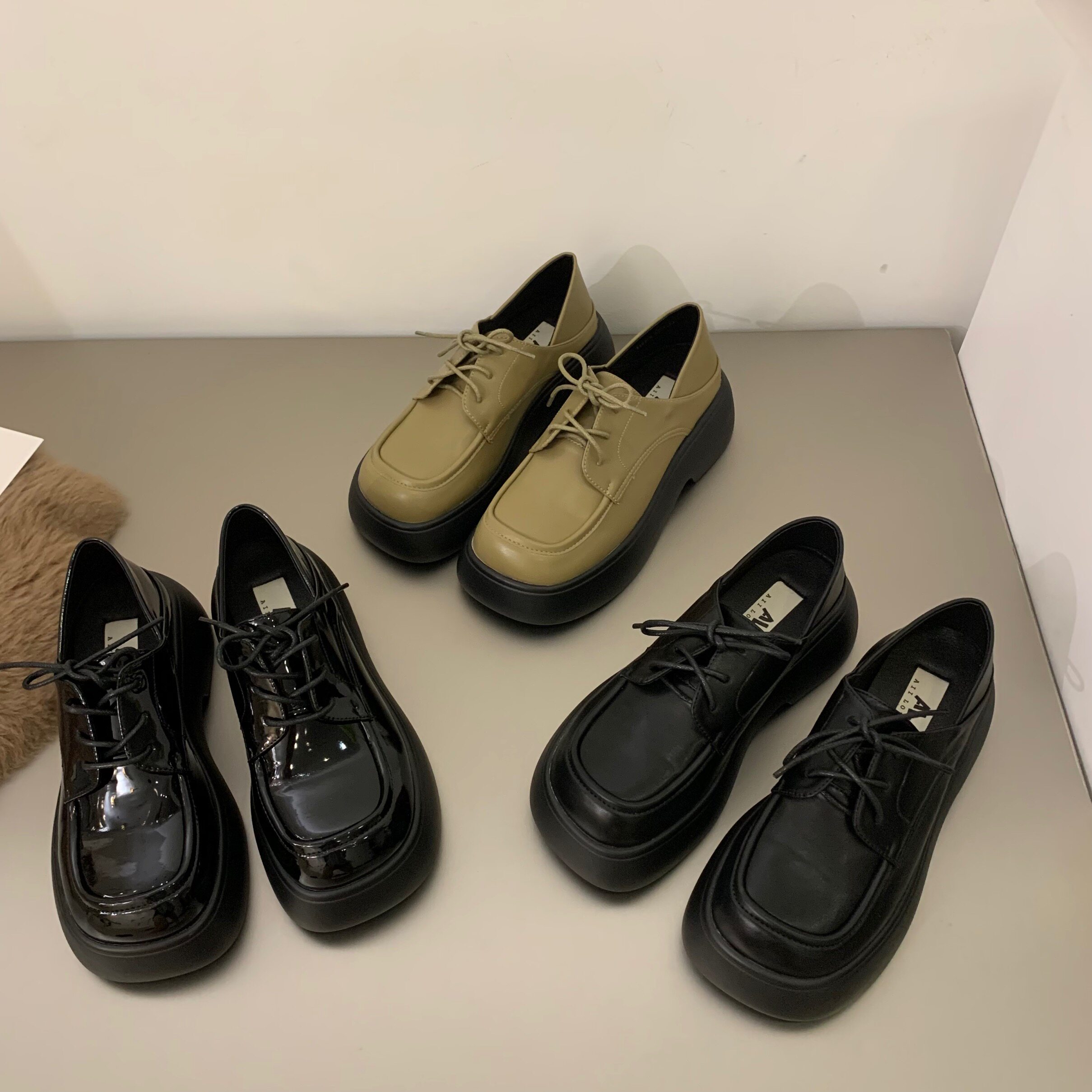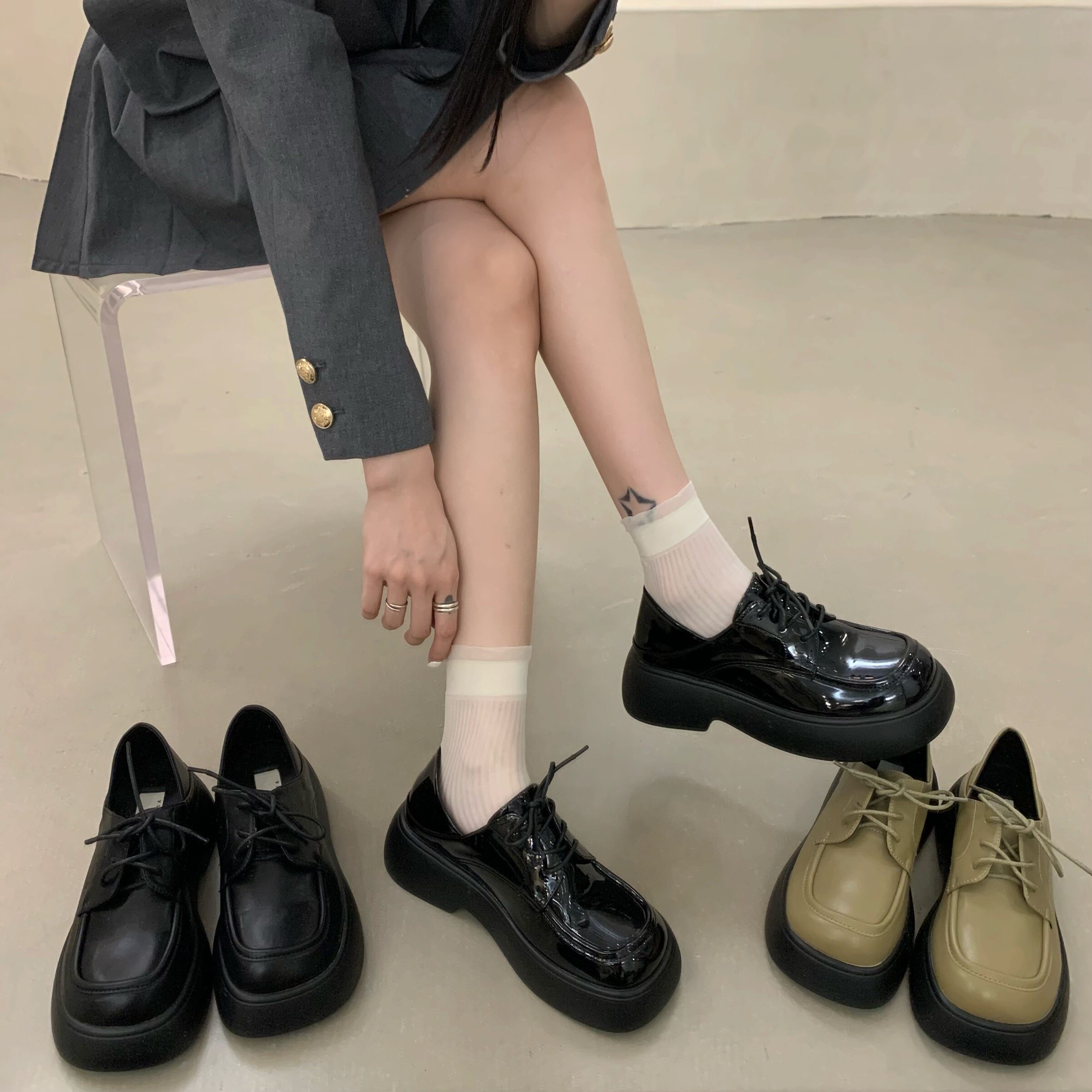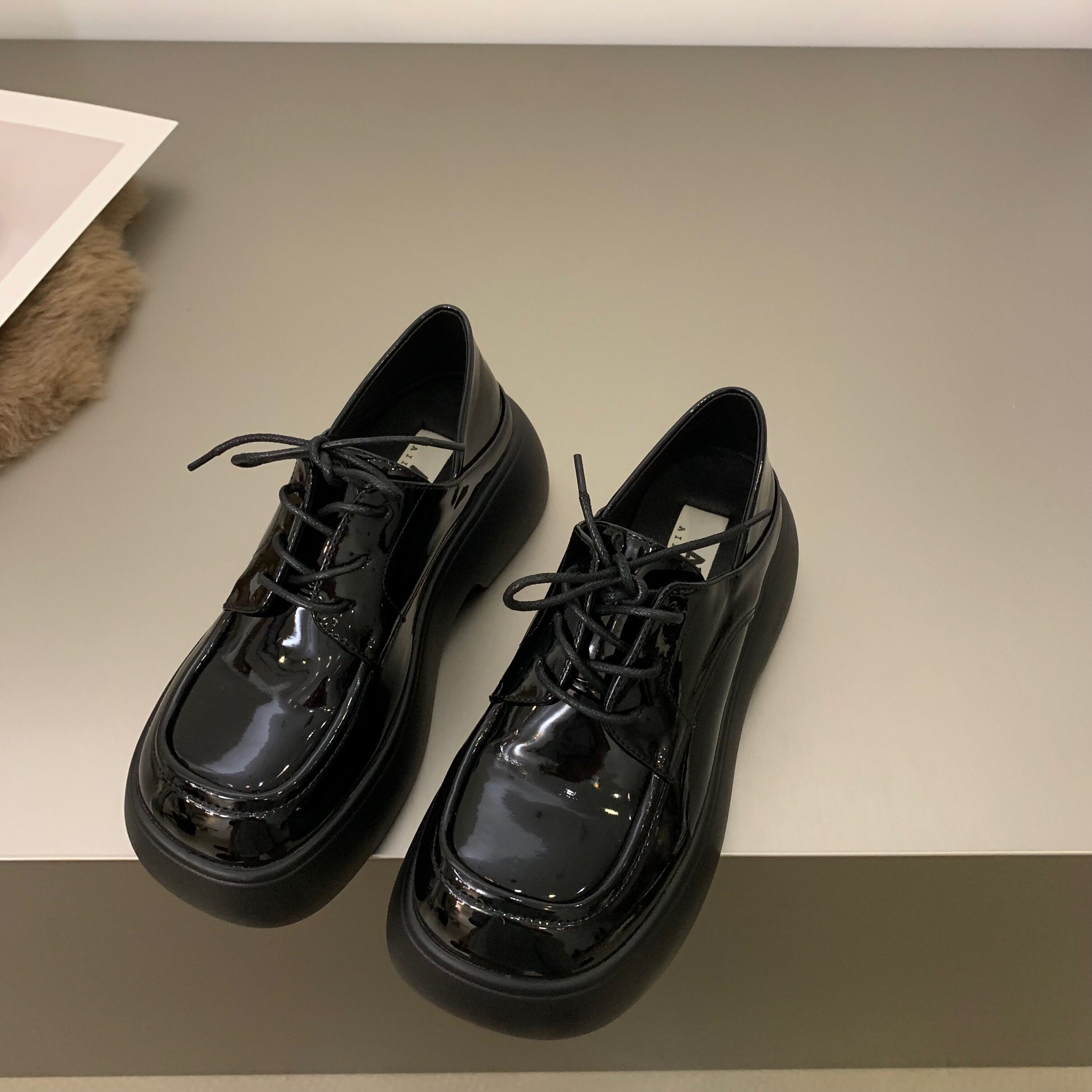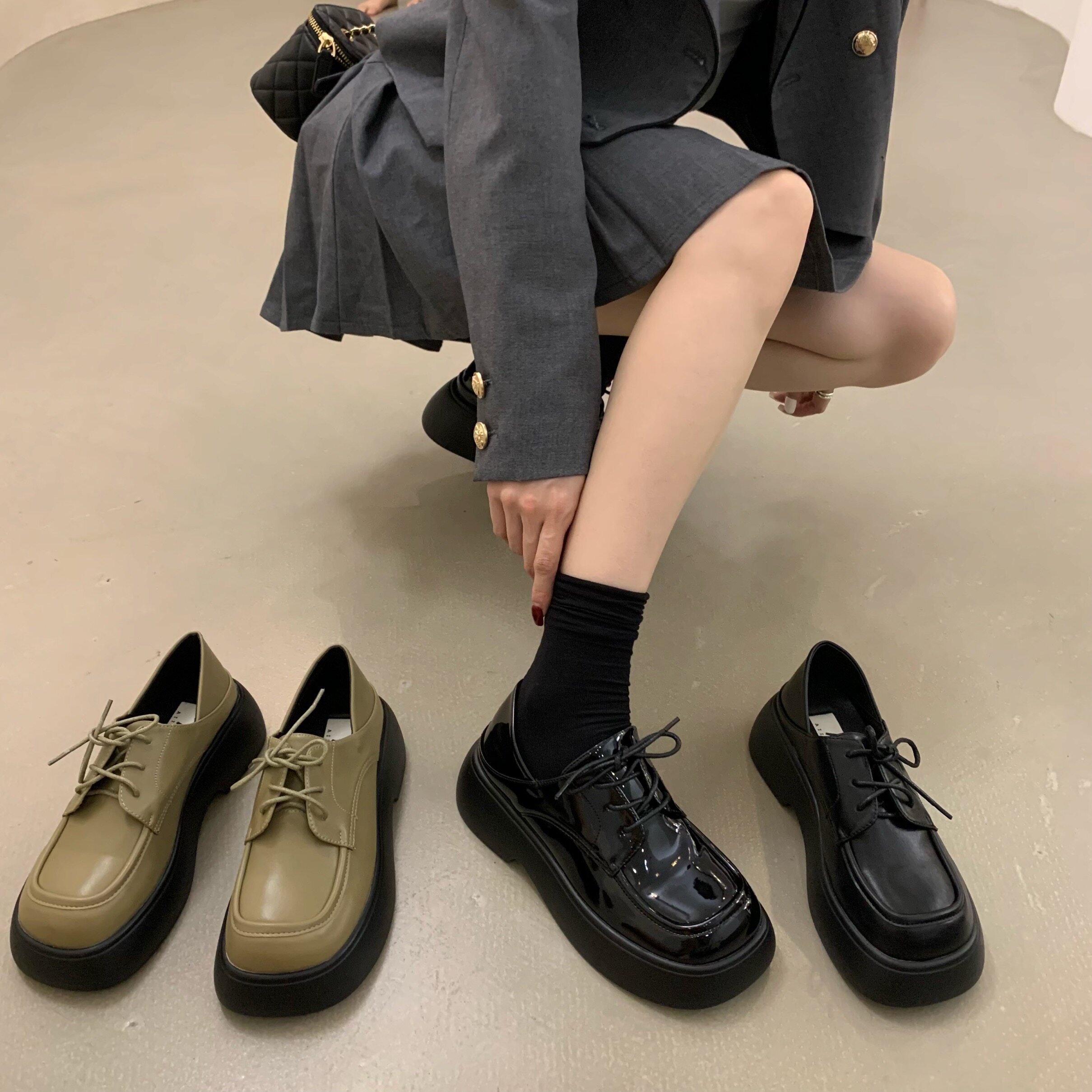 Черная весенняя демисезонная обувь на платформе в английском стиле для кожаной обуви, коллекция 2022
