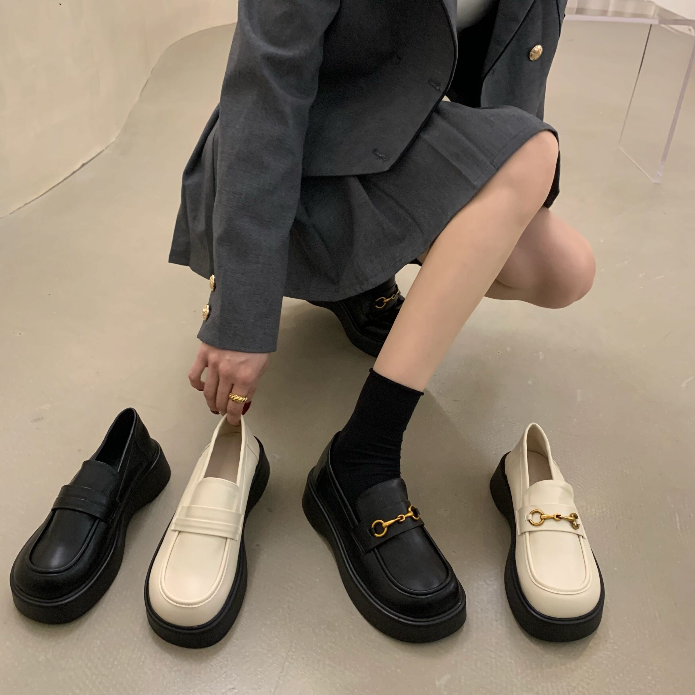 Летняя весенняя демисезонная обувь на платформе в английском стиле для кожаной обуви, коллекция 2022, французский стиль, в британском стиле