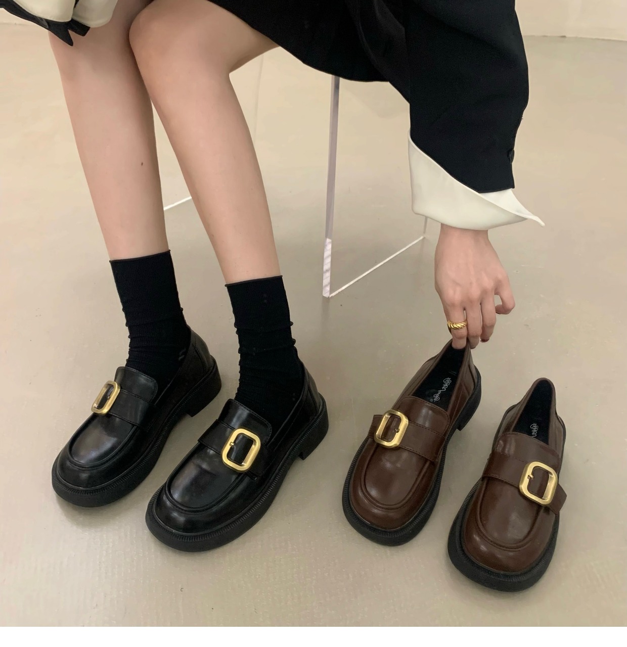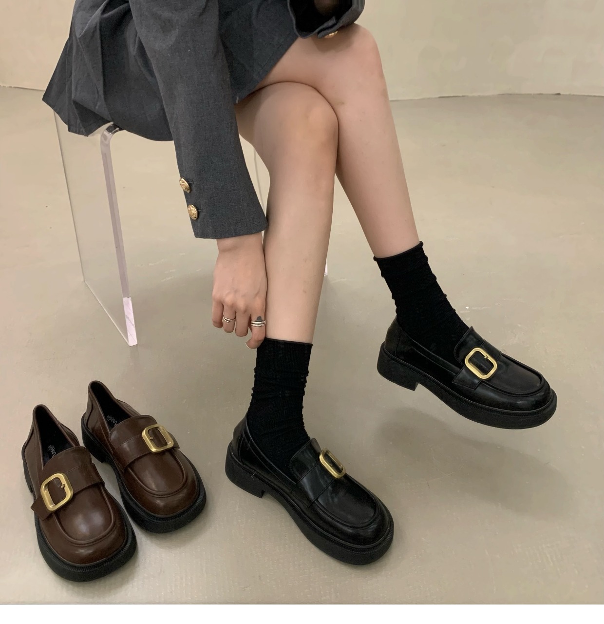 Демисезонная обувь на платформе, флисовые туфли в английском стиле для кожаной обуви, в британском стиле