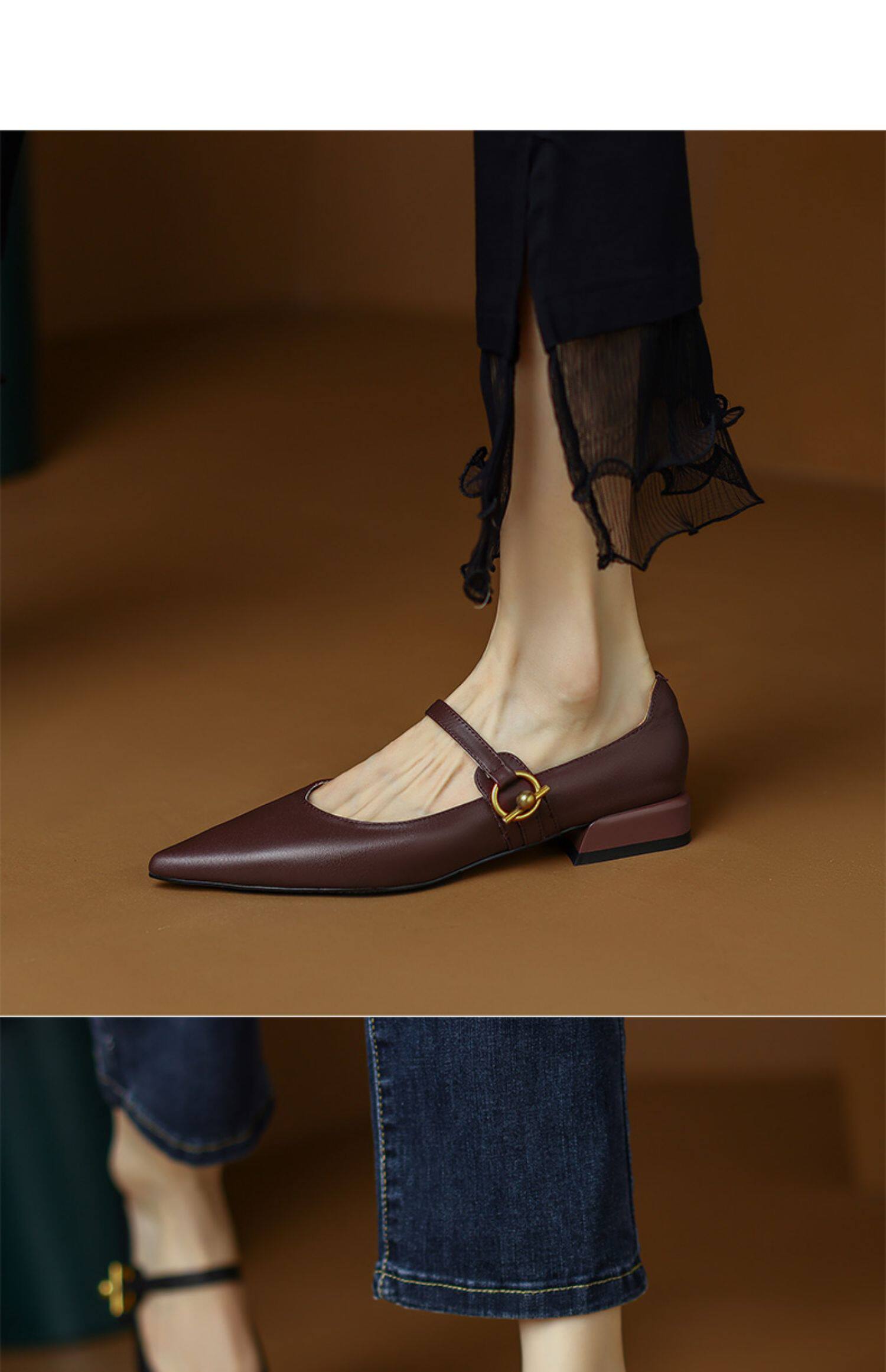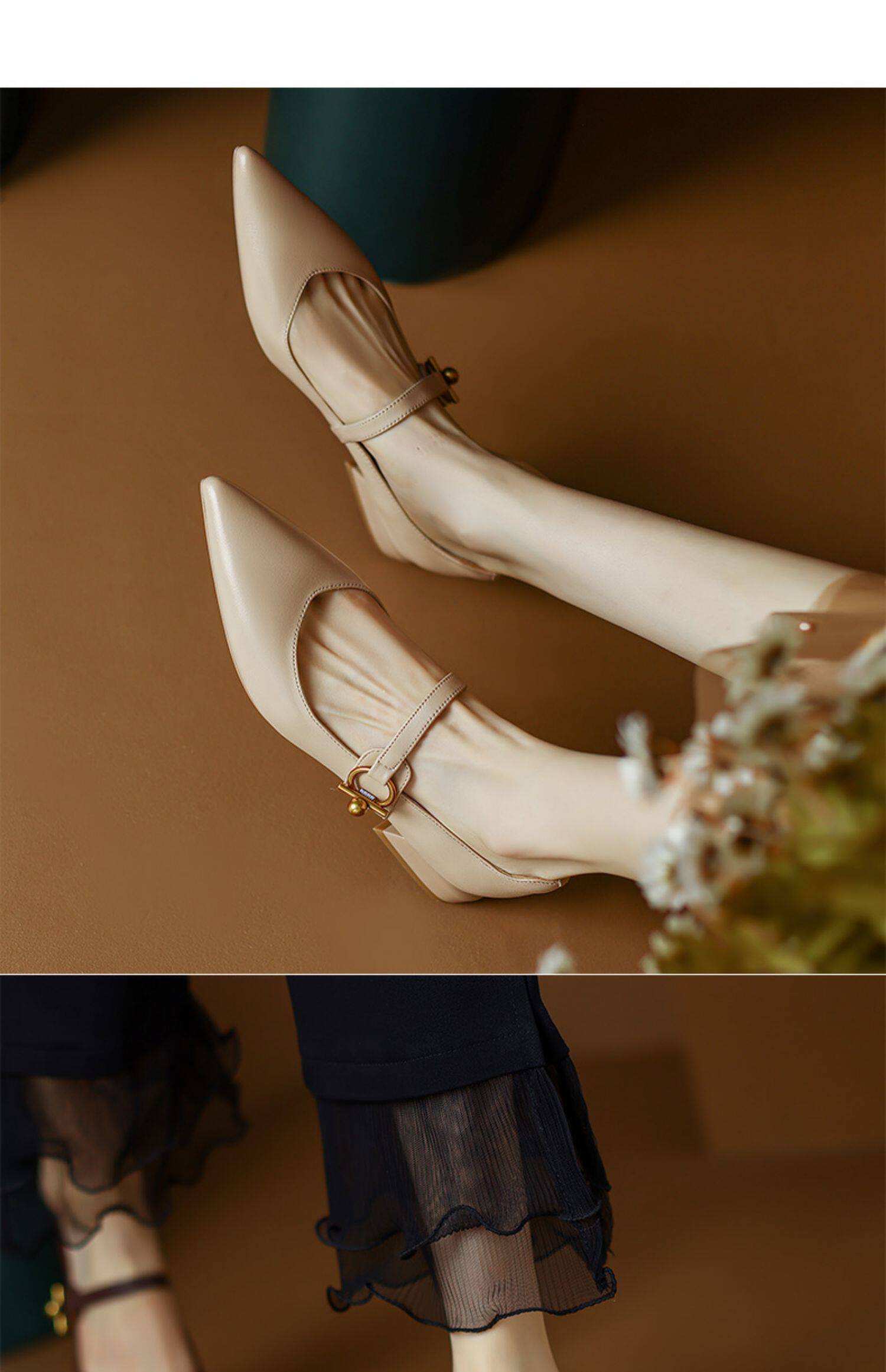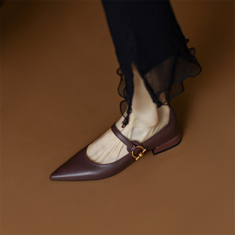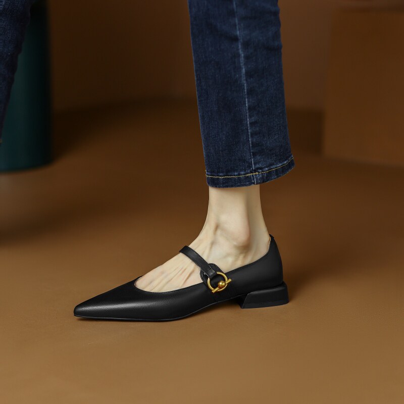 Ретро обувь с заостренным носом, черная униформа медсестры, из натуральной кожи