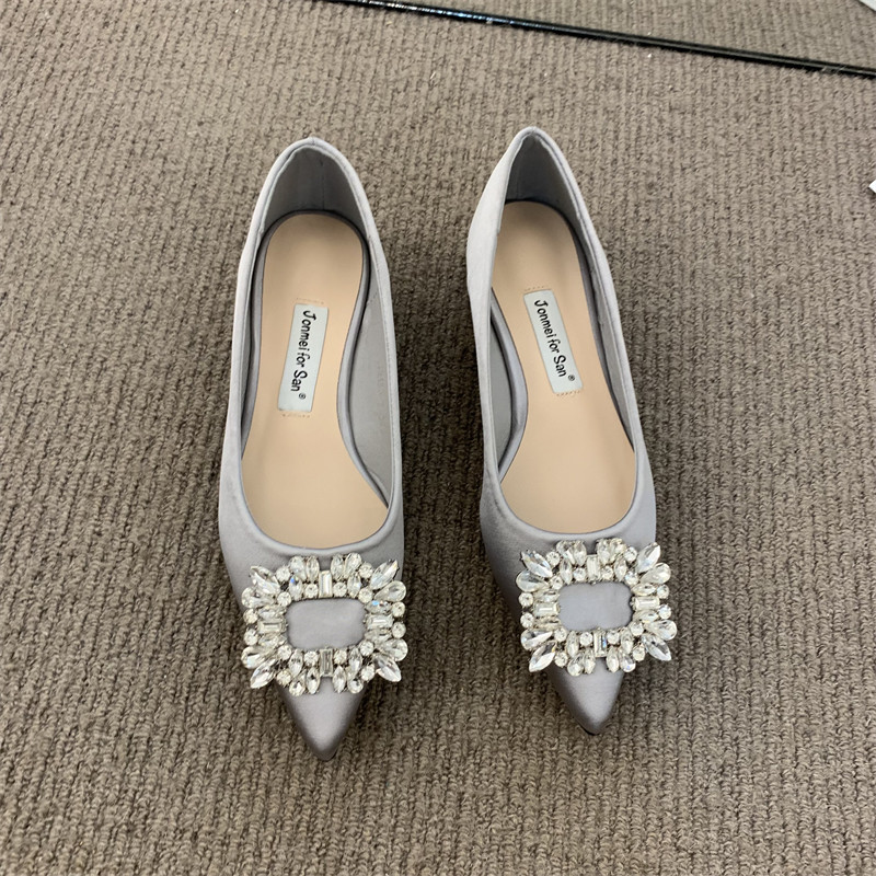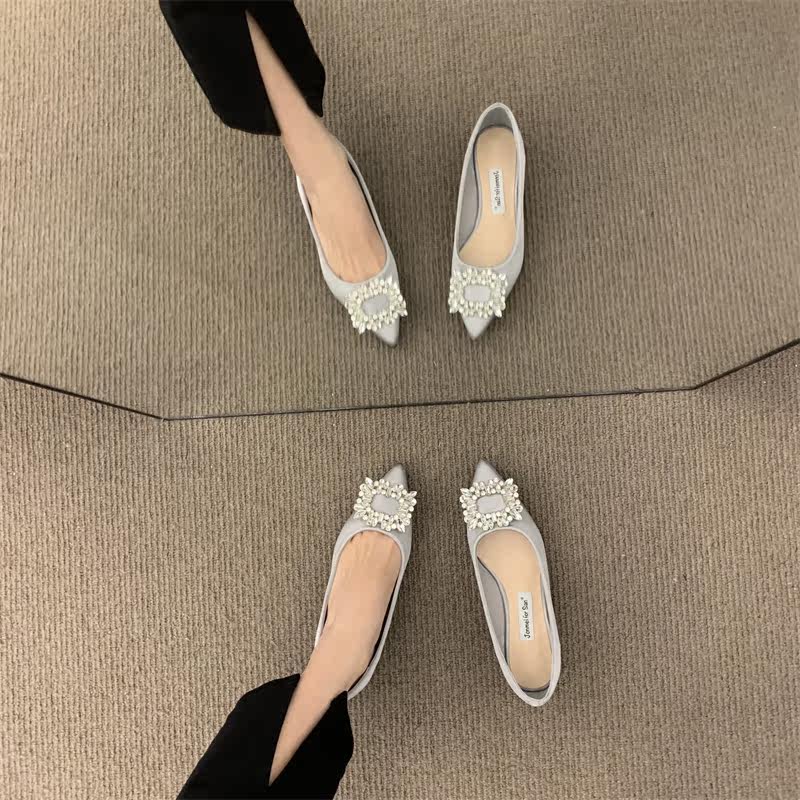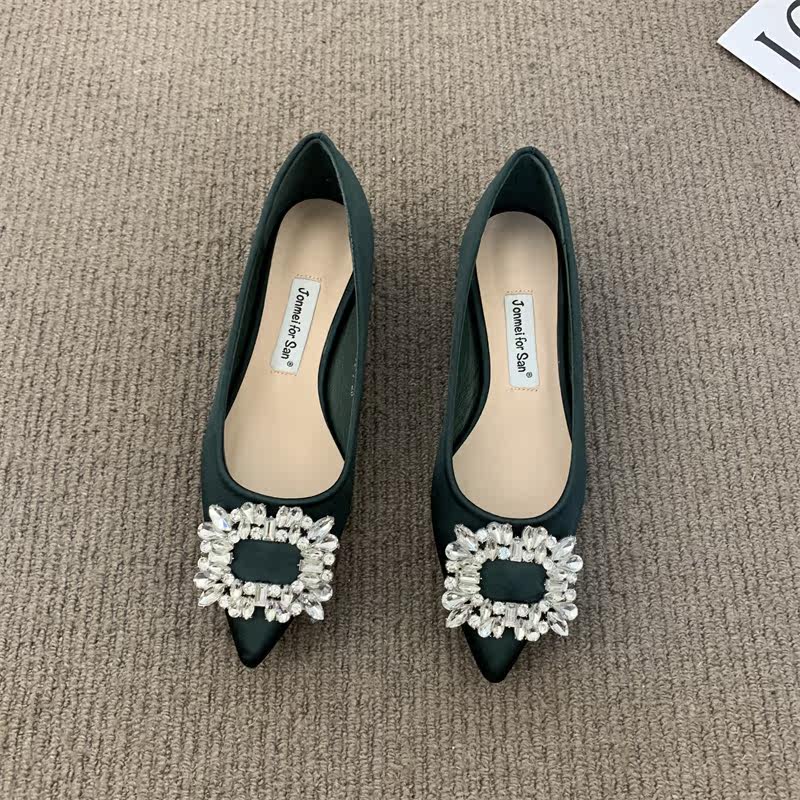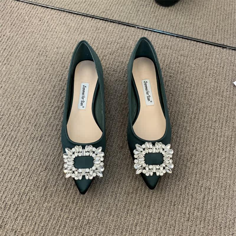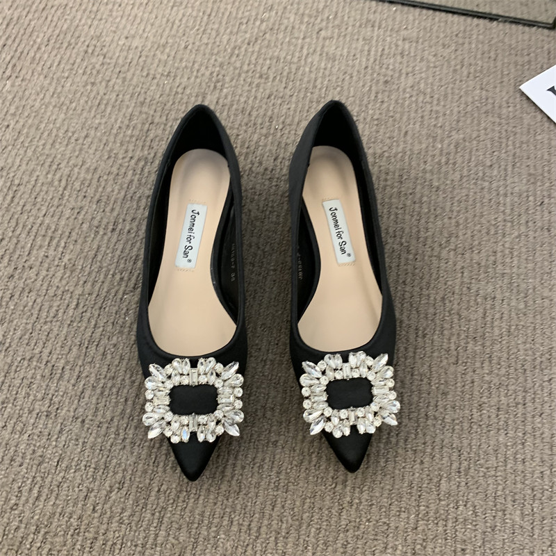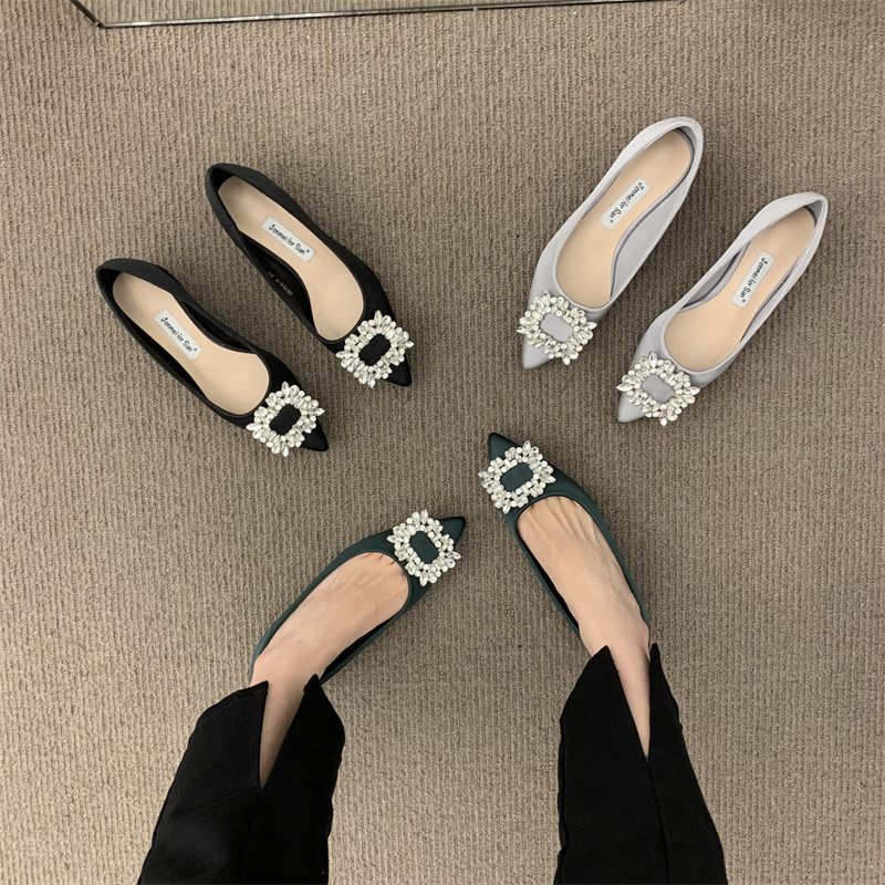 Женские туфли на низком каблуке 2022 года, весна и осень, новые интернет-знаменитости в том же стиле, удобные рабочие туфли с острым носком, стразами и квадратной пряжкой для мелководья