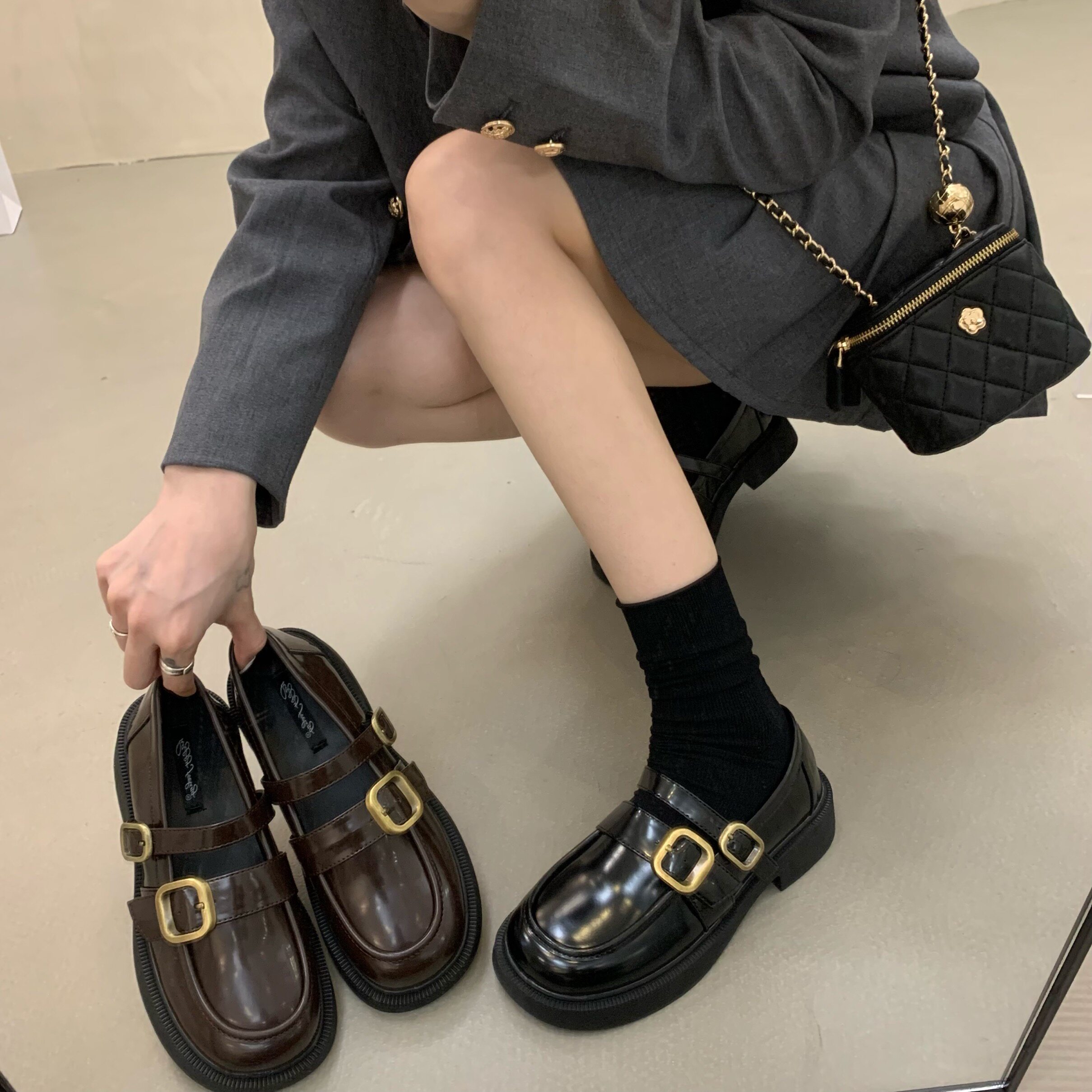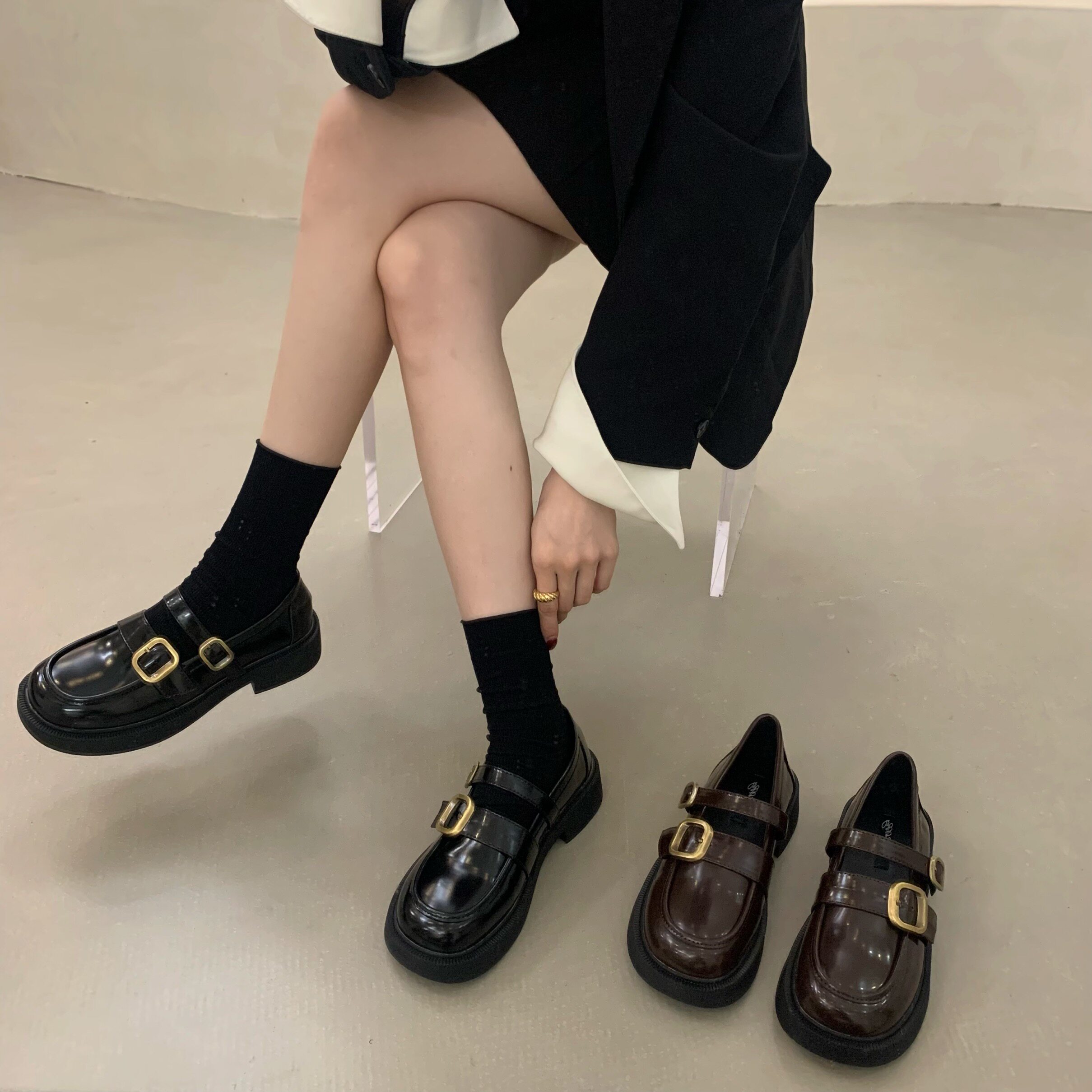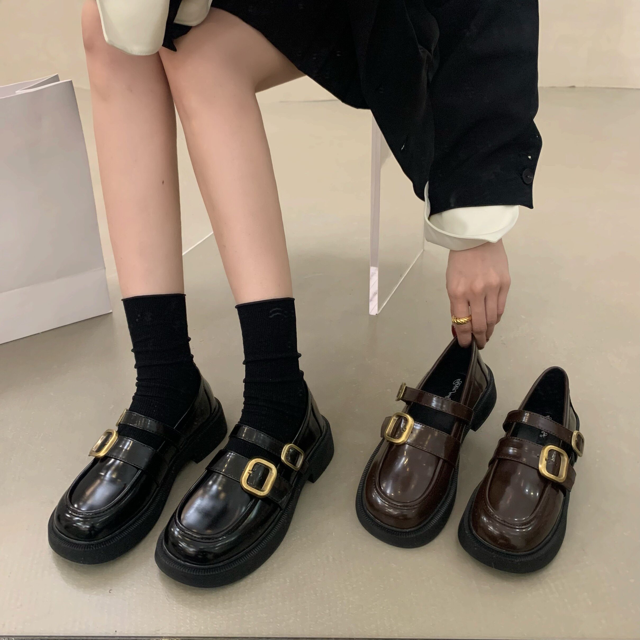 Черные лоферы, весенняя обувь для кожаной обуви, французский стиль