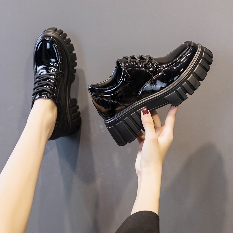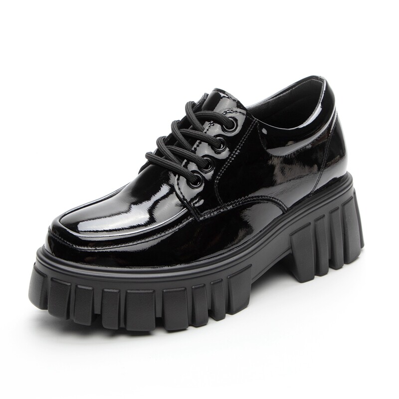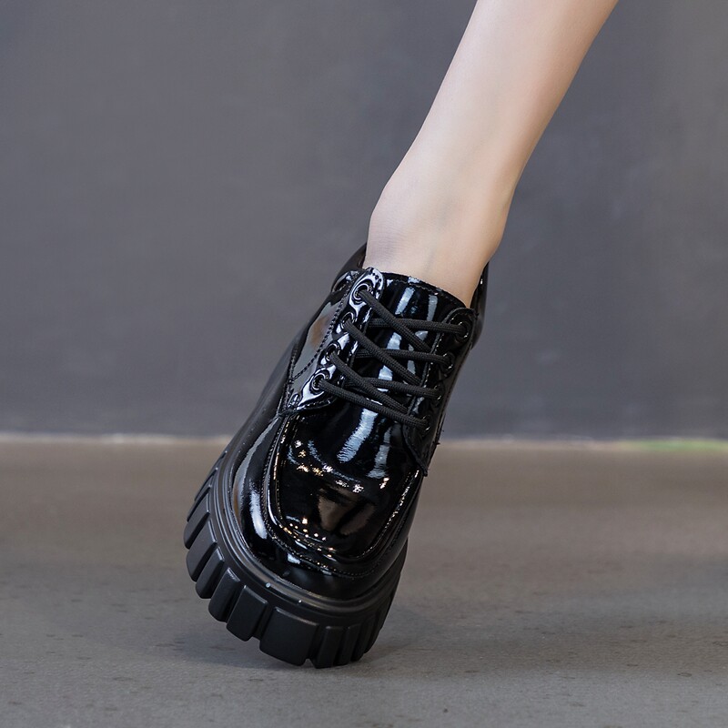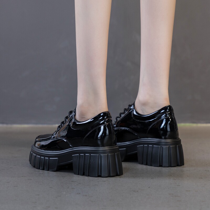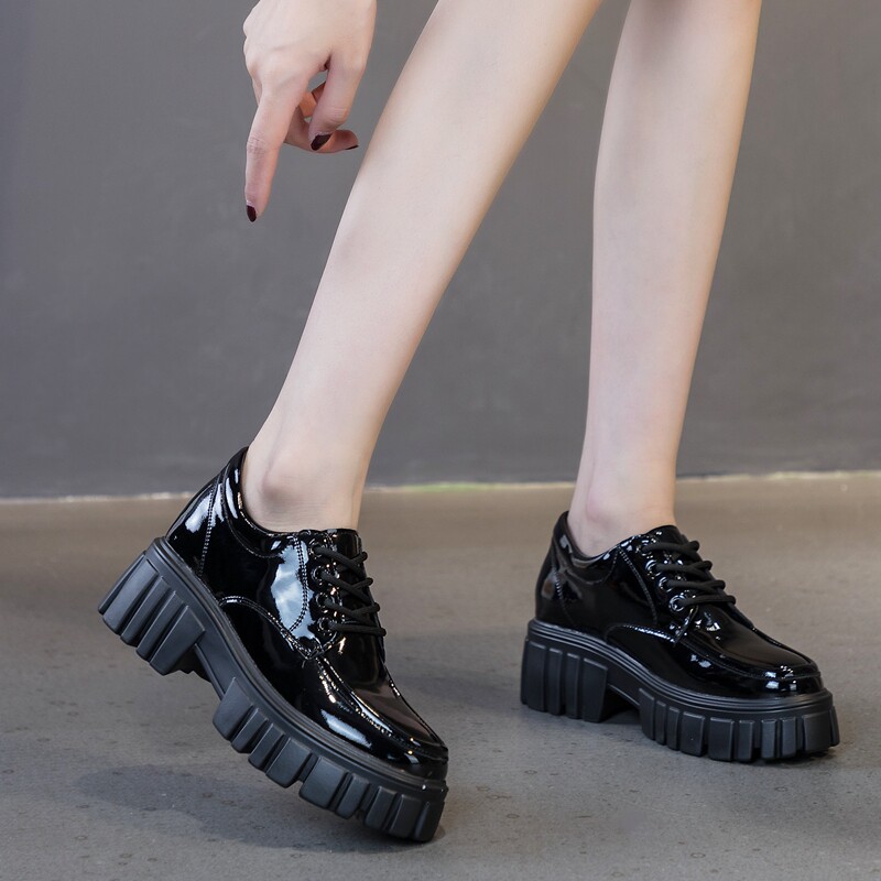 Высокие лоферы на платформе, черная обувь для кожаной обуви, 8см, коллекция 2022, зеркальный эффект