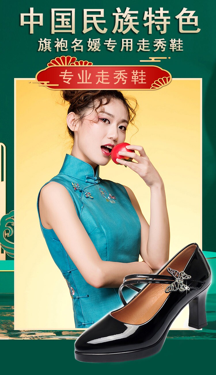 Ципао, манекен головы, водонепроницаемые туфли на высоком каблуке с ремешком, из натуральной кожи