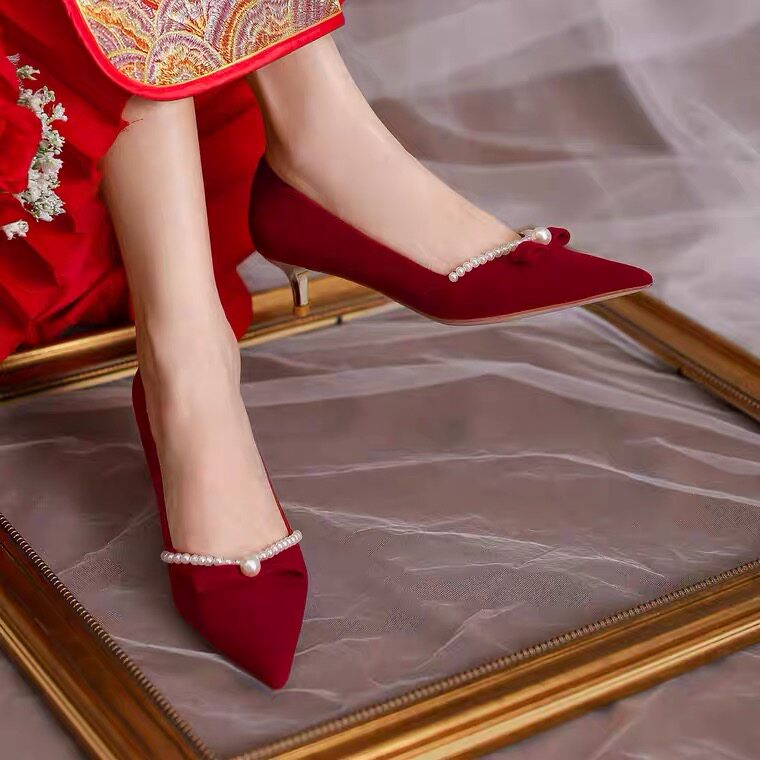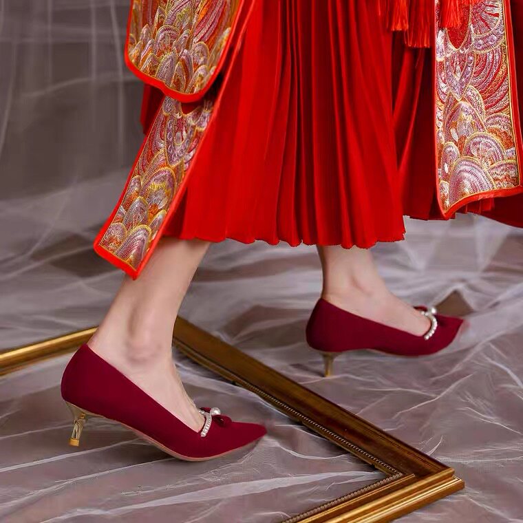 Демисезонные свадебные туфли, обувь для невесты для беременных, 3см, китайский стиль, против усталых ног