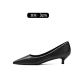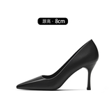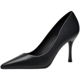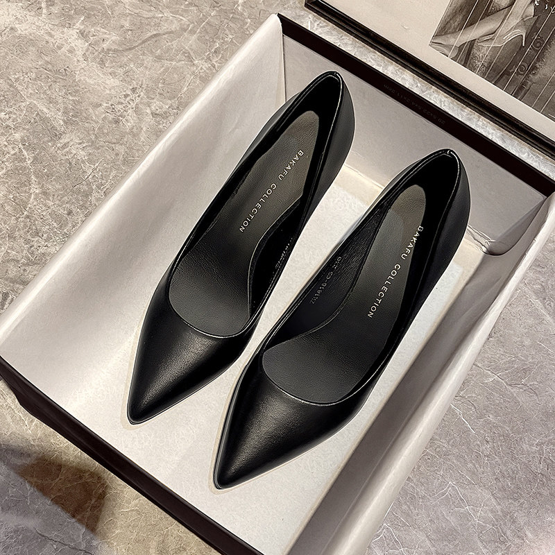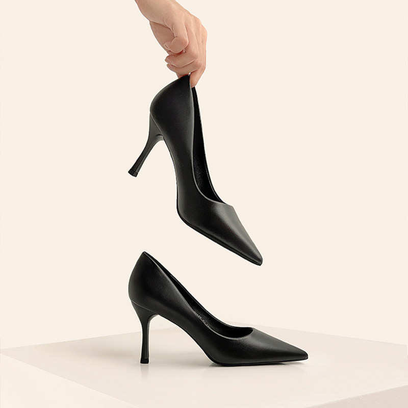 Черная весенняя обувь на высоком каблуке с заостренным носом для кожаной обуви