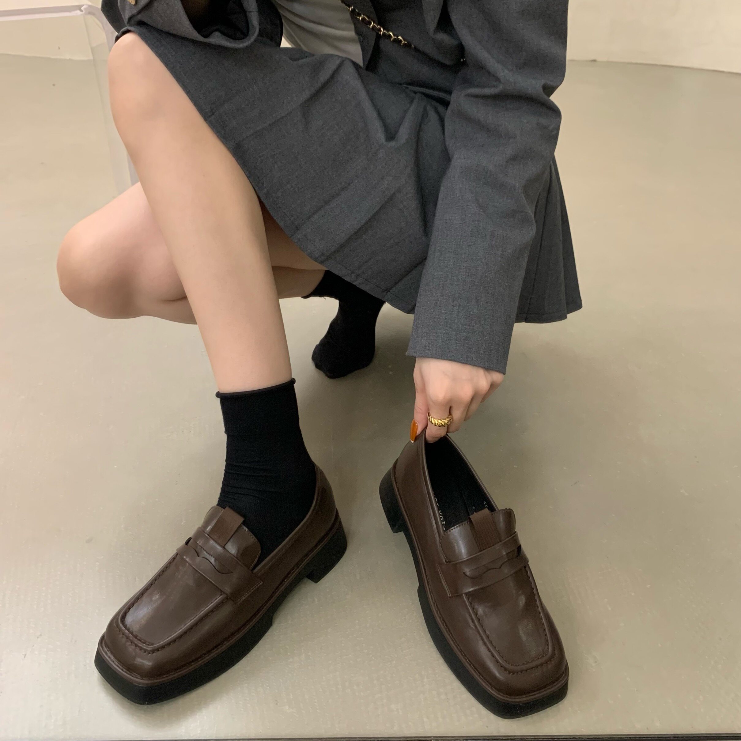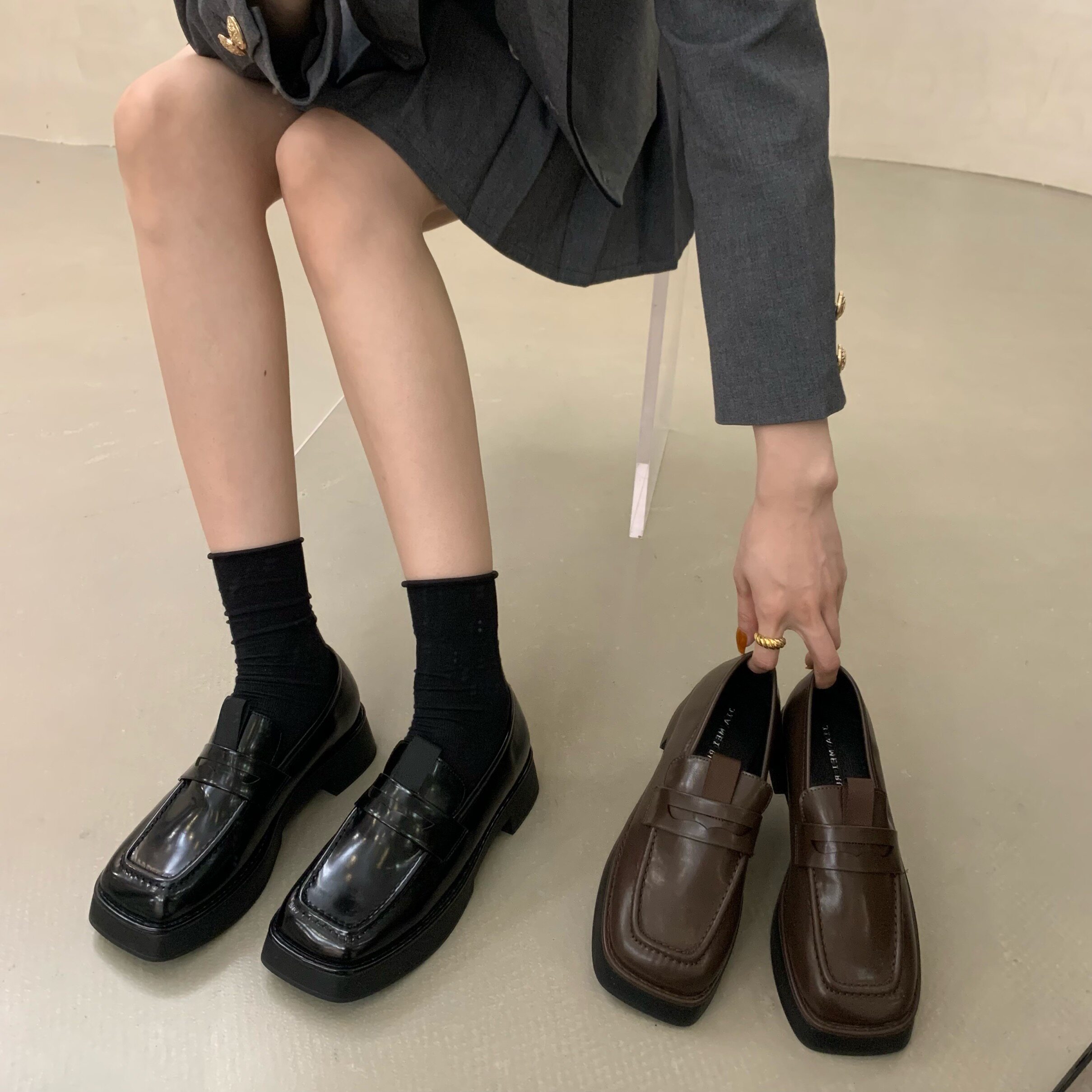 Весенняя демисезонная обувь на платформе в английском стиле для кожаной обуви, коллекция 2022, в британском стиле