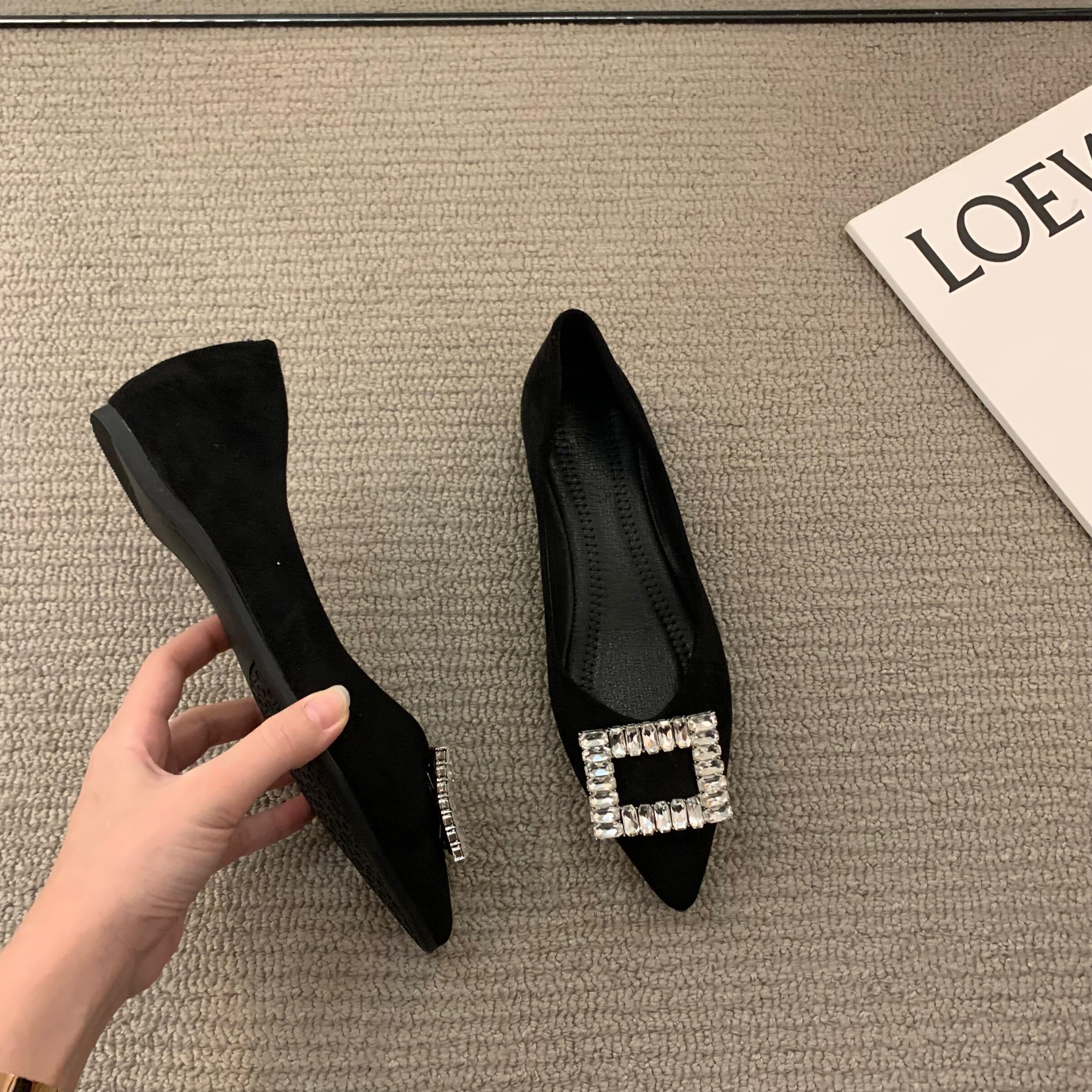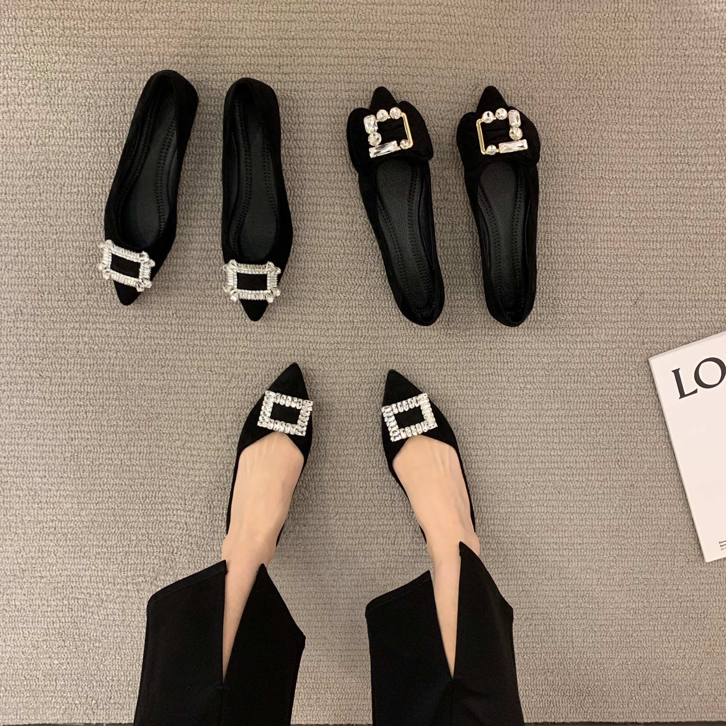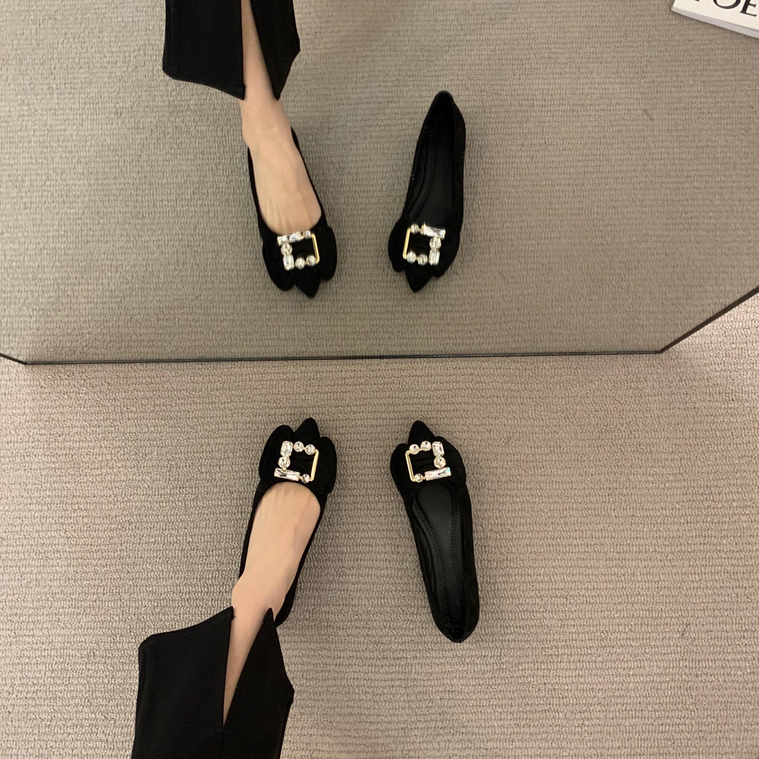 Черная весенняя обувь с заостренным носом, коллекция 2023, французский стиль