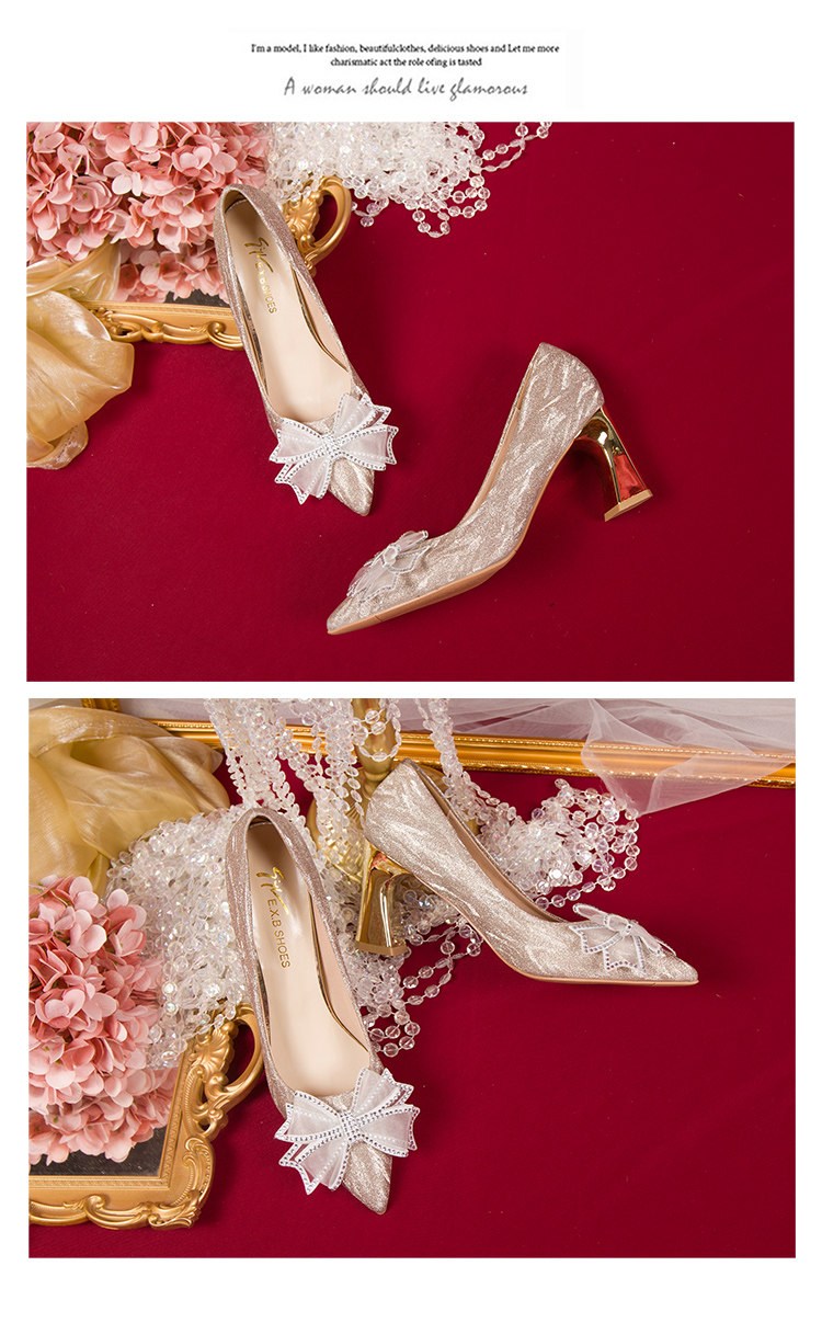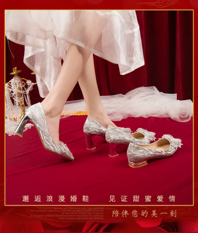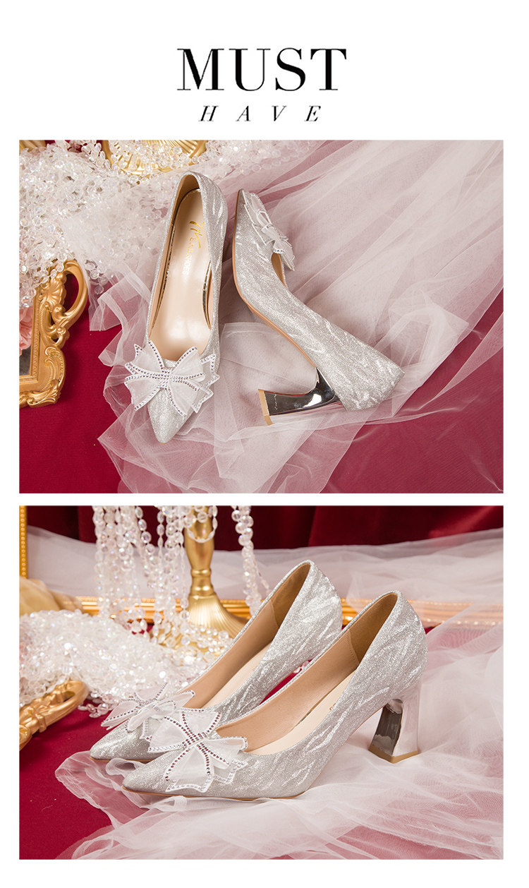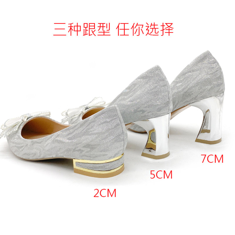Серебряная обувь с бантиком на высоком каблуке, золотые свадебные туфли, для подружки невесты