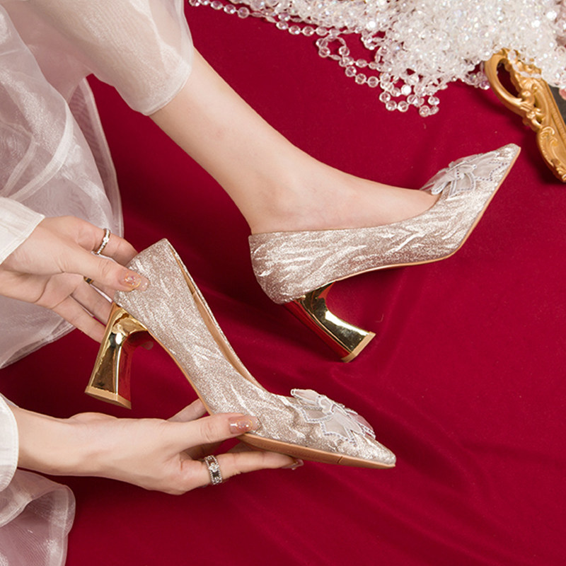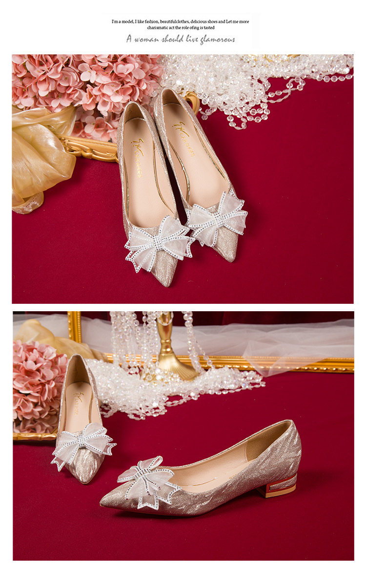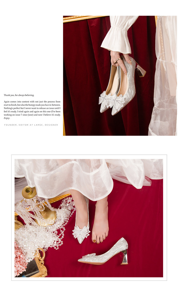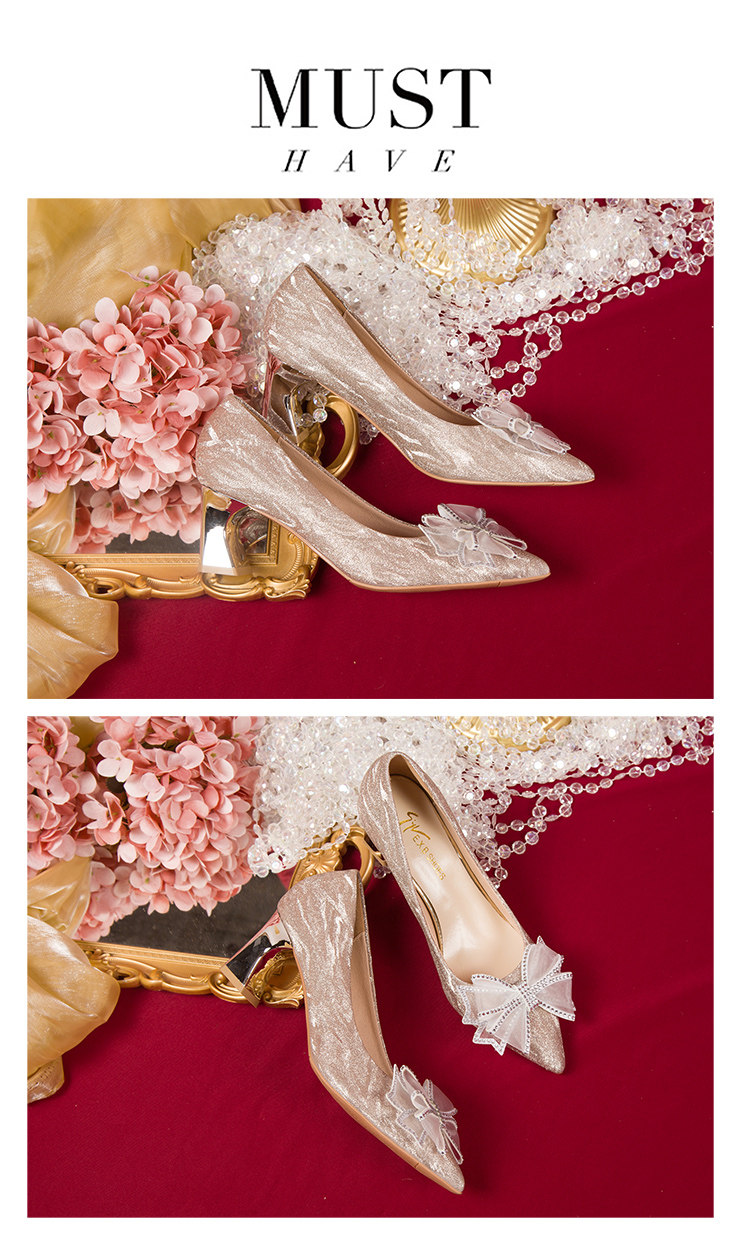 Серебряная обувь с бантиком на высоком каблуке, золотые свадебные туфли, для подружки невесты