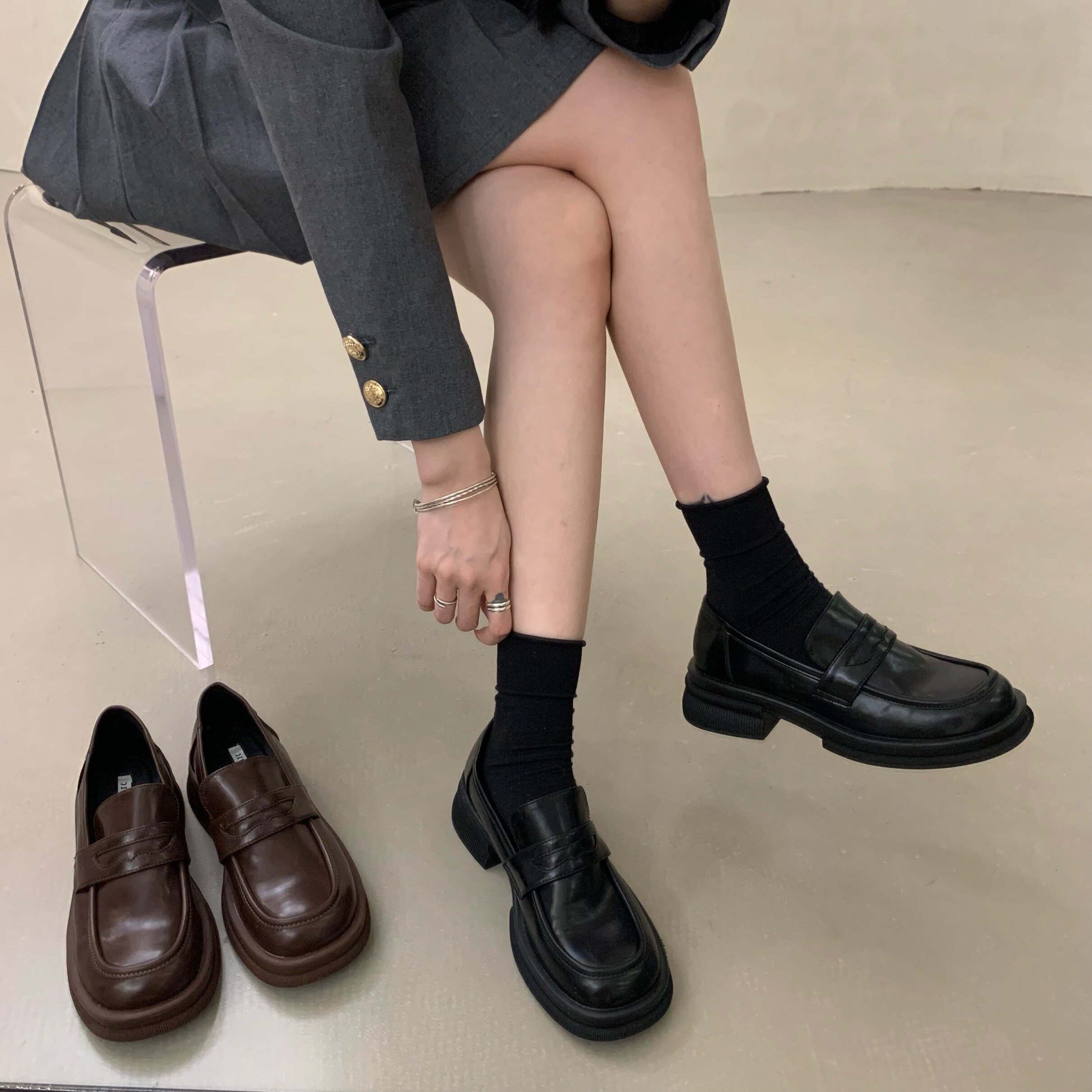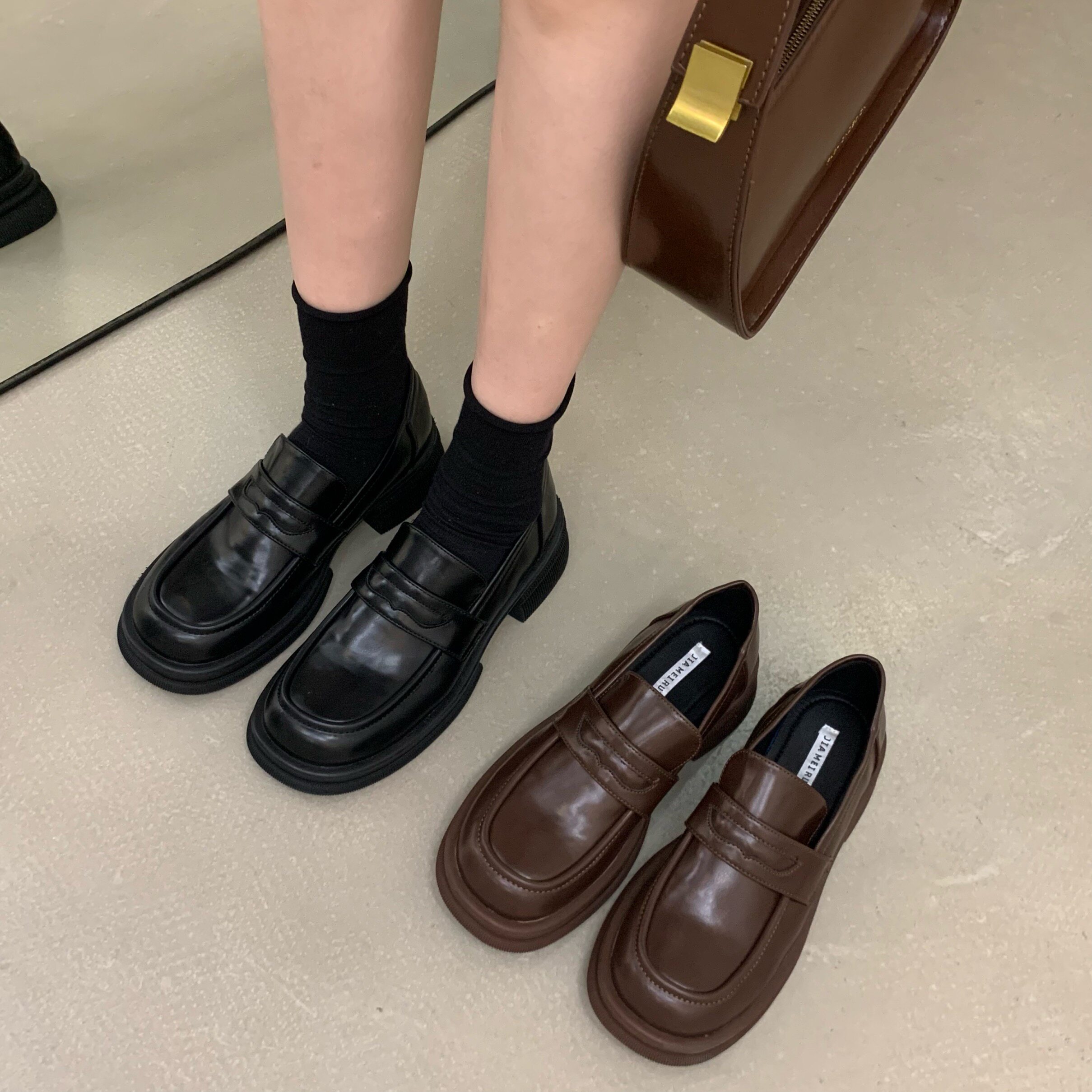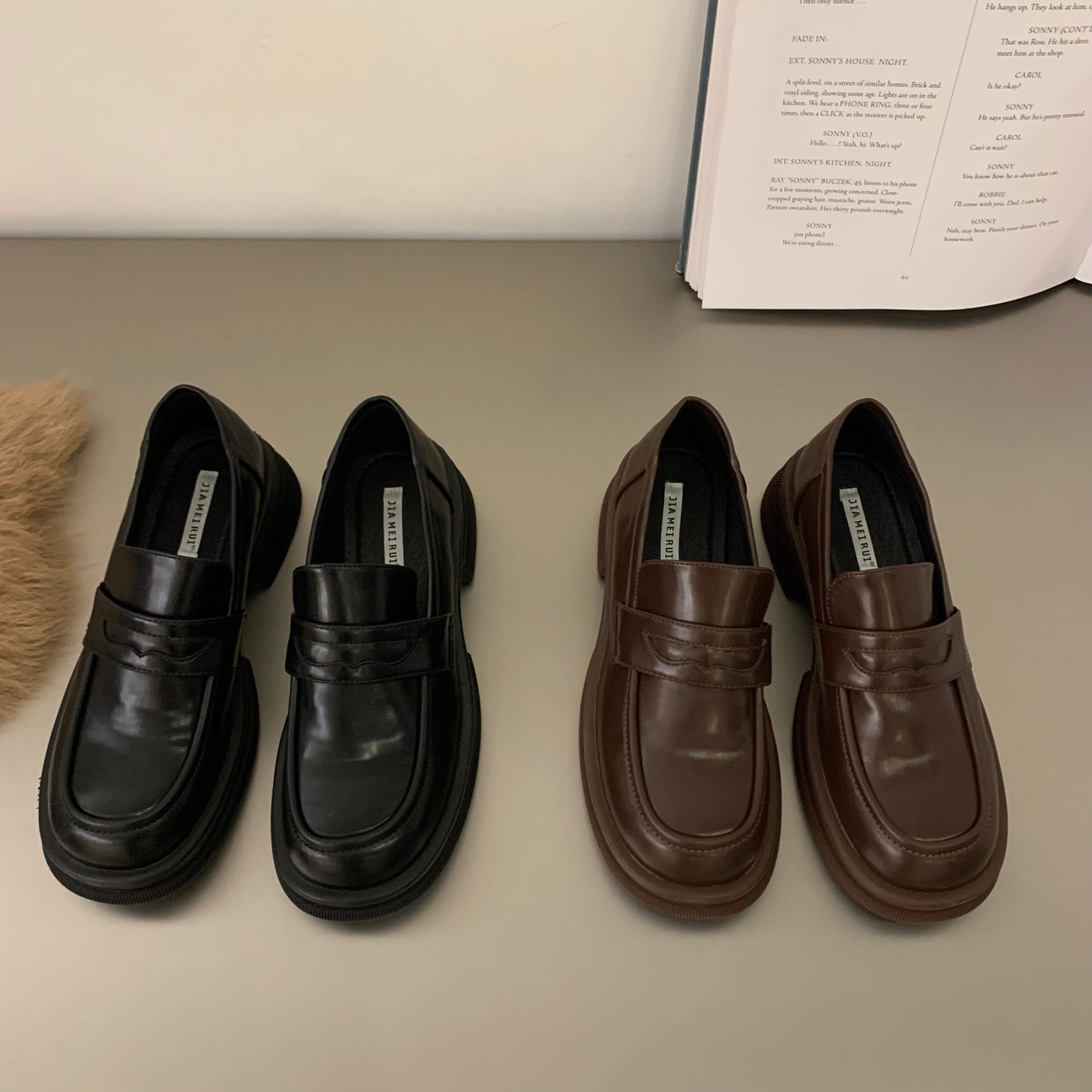 Черная демисезонная универсальная обувь на платформе в английском стиле для кожаной обуви, коллекция 2022, в британском стиле