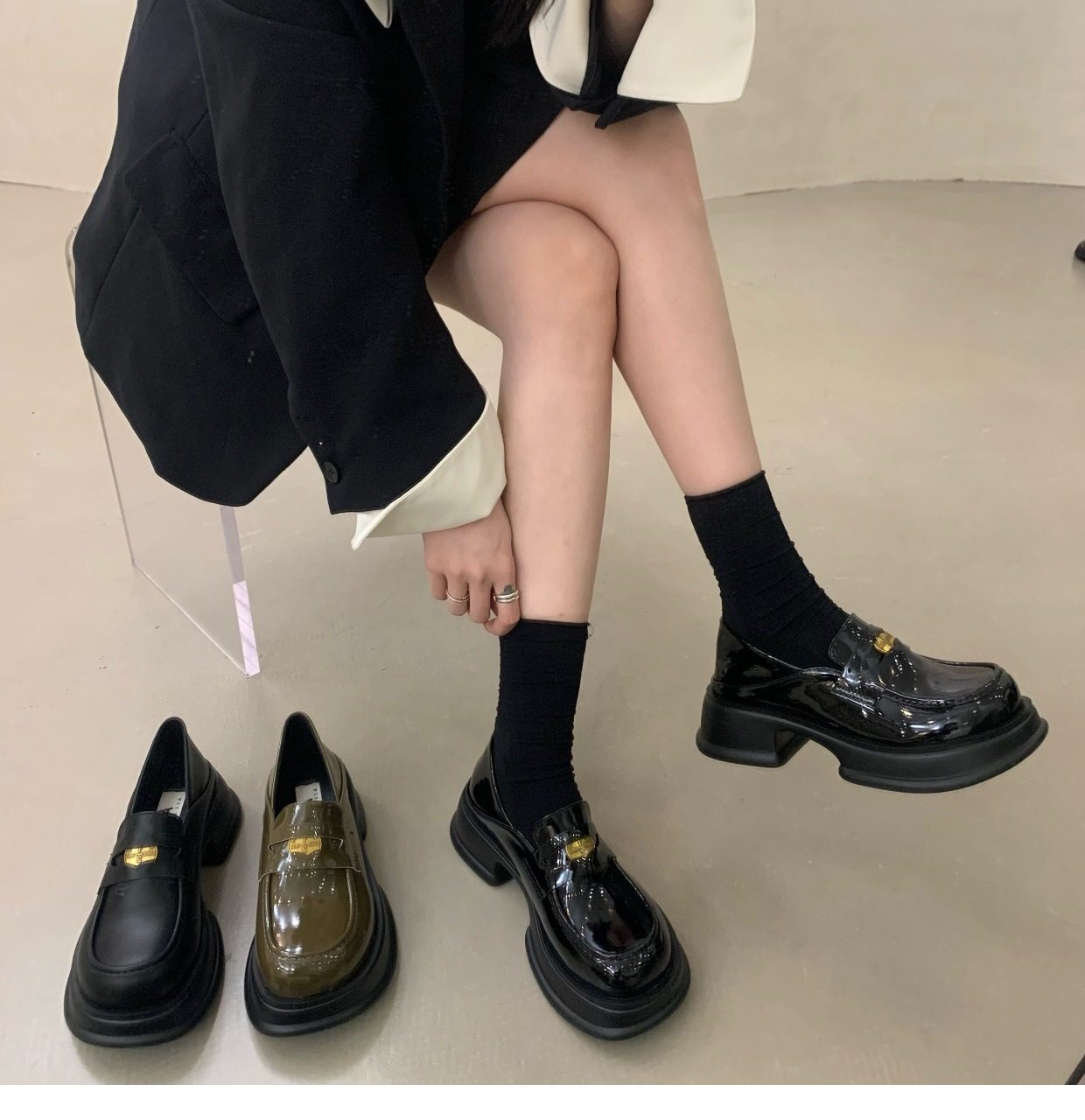 Демисезонная обувь на платформе, туфли для кожаной обуви, коллекция 2022, французский стиль