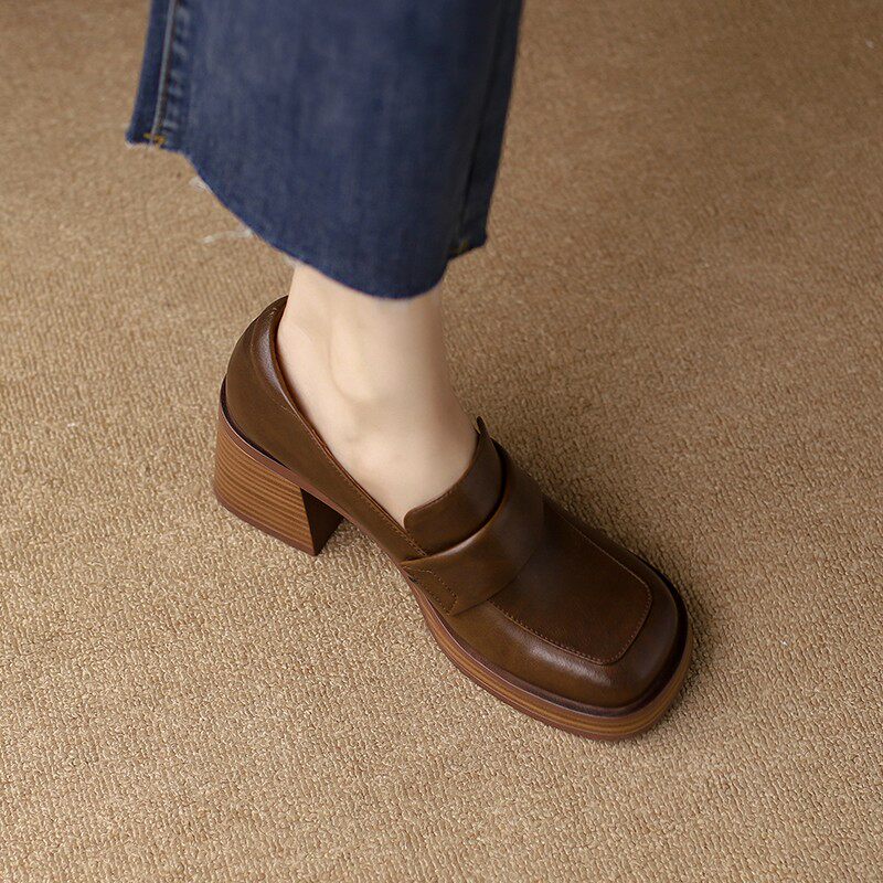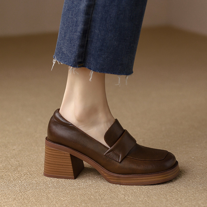 Обувь, коричневые лоферы на высоком каблуке, французский ретро стиль, коллекция 2022