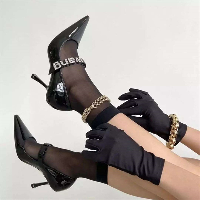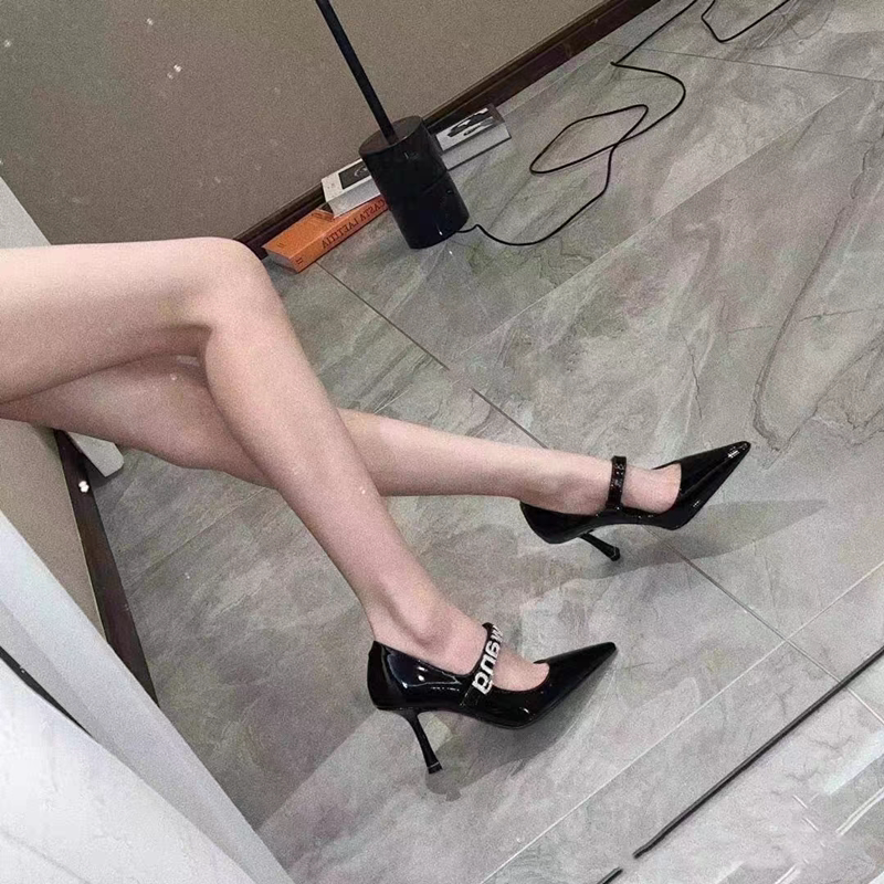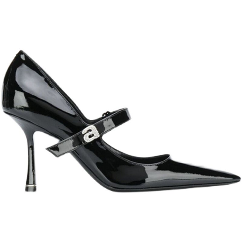 Весна и осень 2025, новые женские туфли на высоком каблуке со стразами и буквами на шпильке, из лакированной кожи, с острым носком, с пряжкой в одно слово, туфли Мэри Джейн