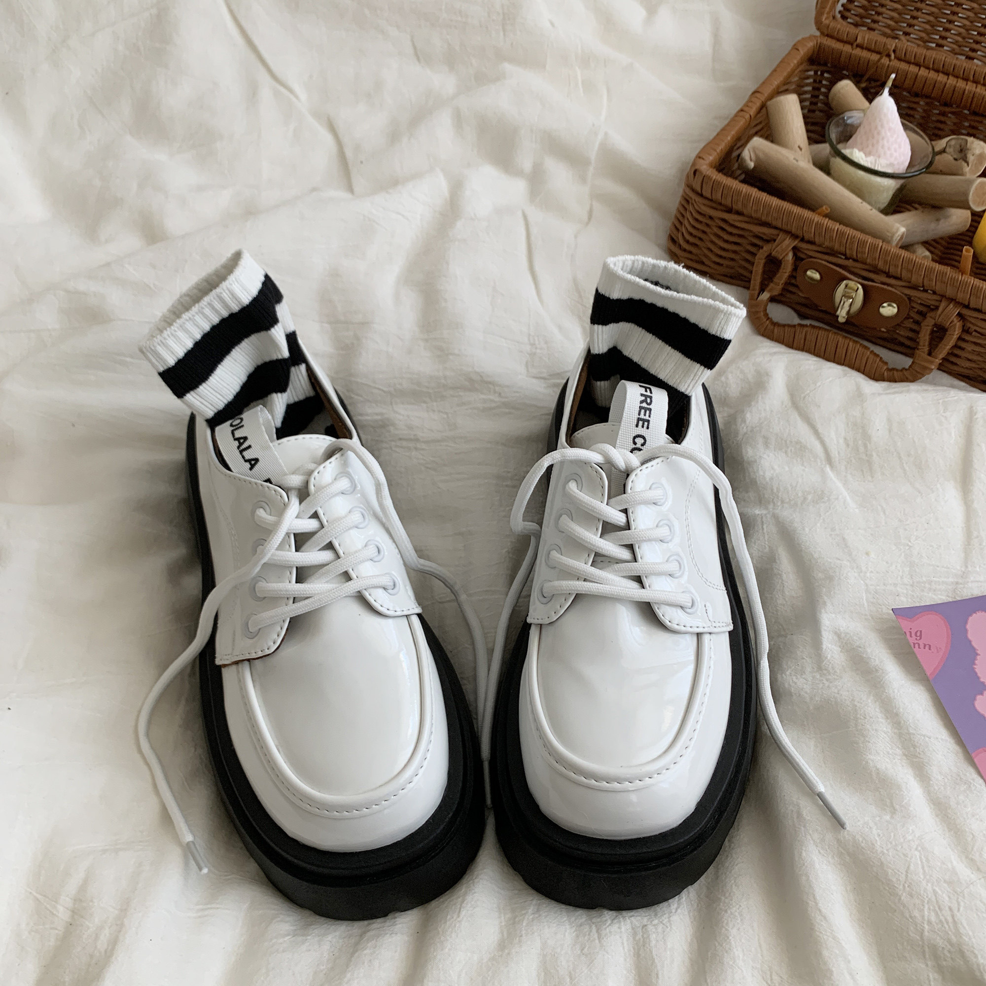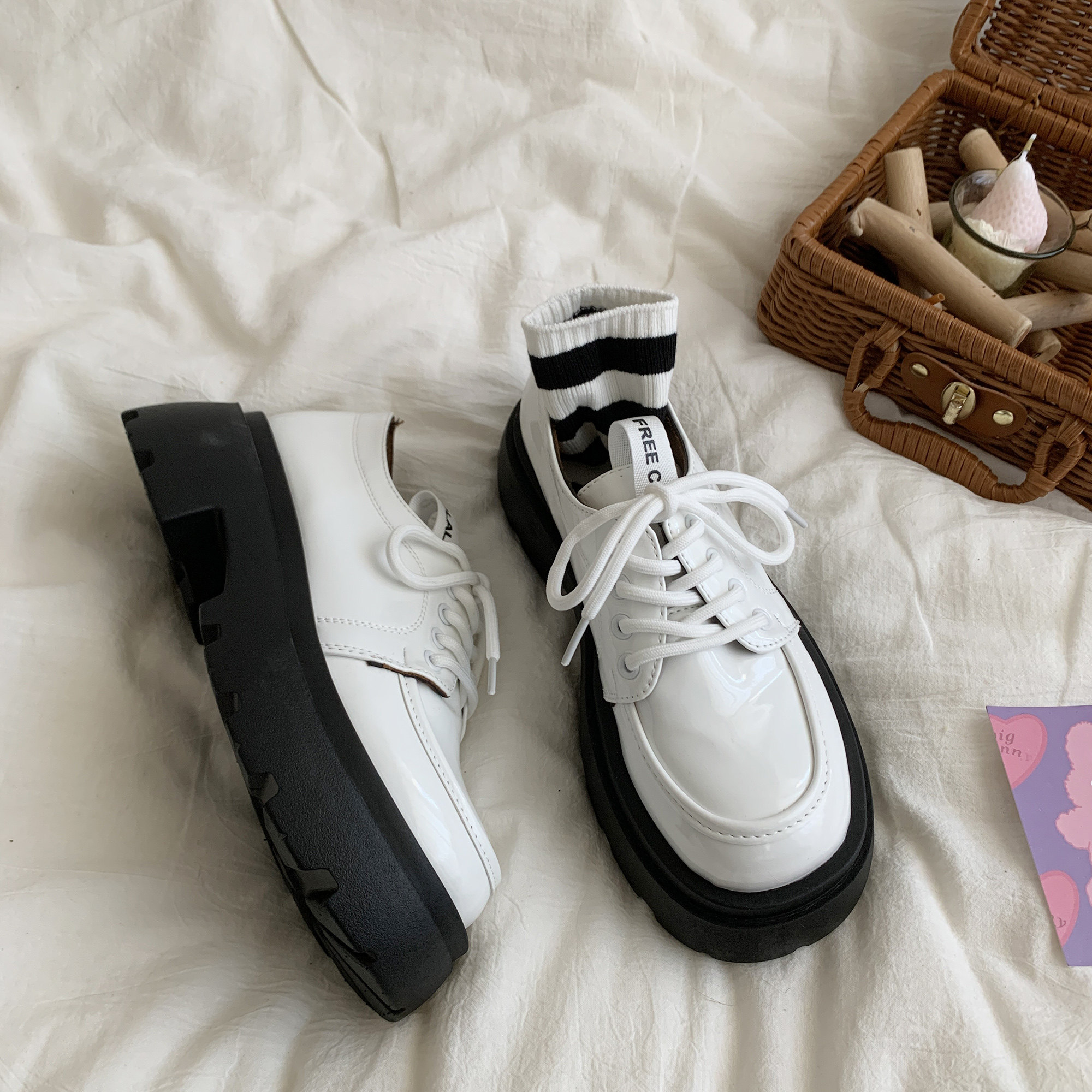 Белая универсальная демисезонная обувь в английском стиле для кожаной обуви, высокие туфли на платформе, 2022 года
