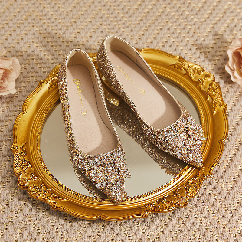 Свадебные туфли, обувь со стразами с заостренным носом, блестки для ногтей для невесты, коллекция 2023, большой размер