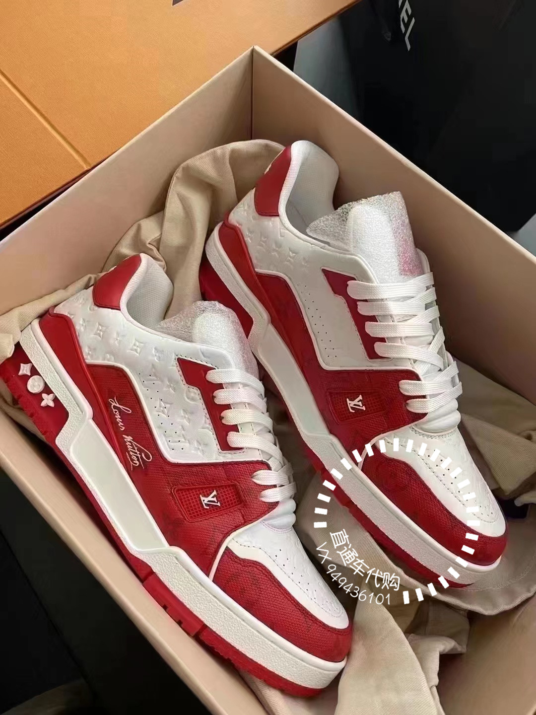 Подлинная покупка Louis Vuitton/LV 22 осень и зимняя красная и белая буква логотип спортивные обувь тренер