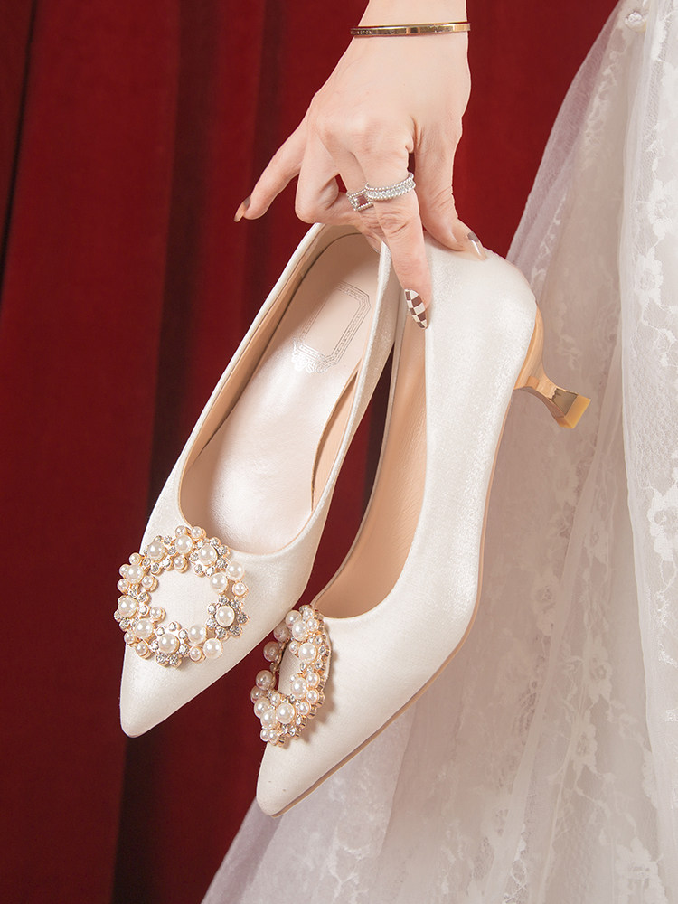 Свадебные туфли, обувь для невесты с заостренным носом на высоком каблуке, 2024 года, французский стиль, против усталых ног, для подружки невесты