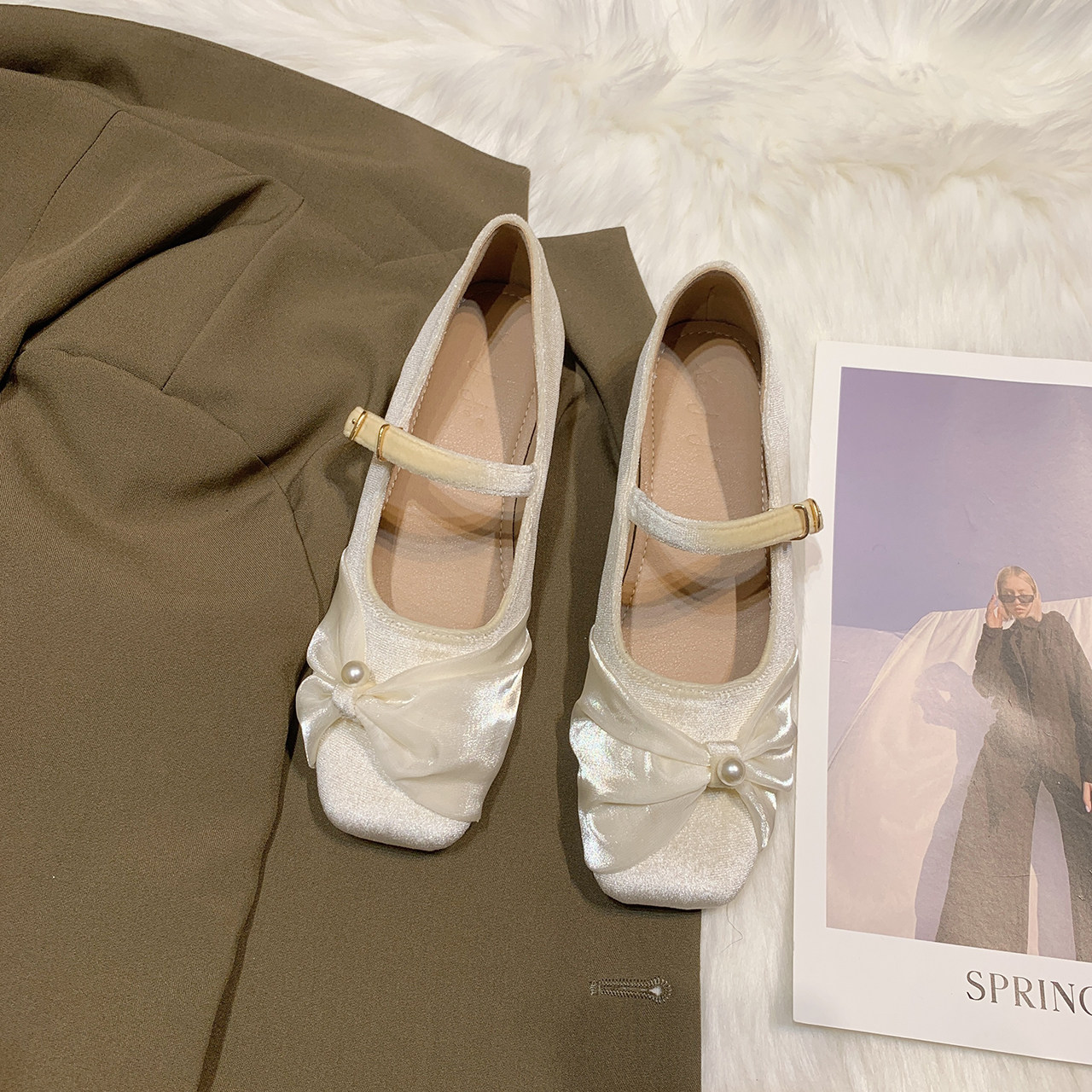 Jiji studios нишевые легкие рот густые каблуки одиночные туфли женская мягкая дно пружина и осень -новая туфли бабушки в стиле феи