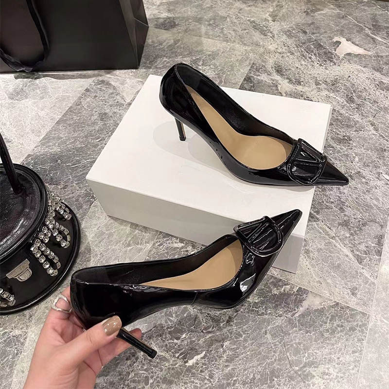 Упомянутые пальцы обнаженной высокие каблуки для женщин 2025 весна, лето и осень Новая мягкая кожа модная темперамент знаменитость Слим каблук легкие рот одиночные туфли