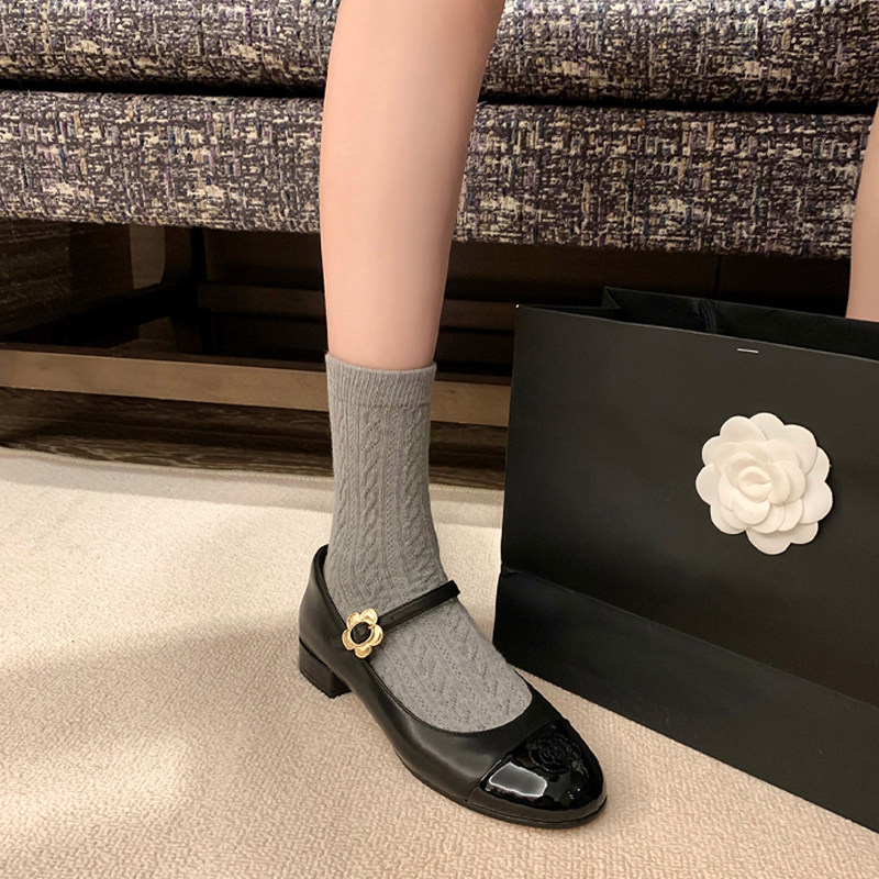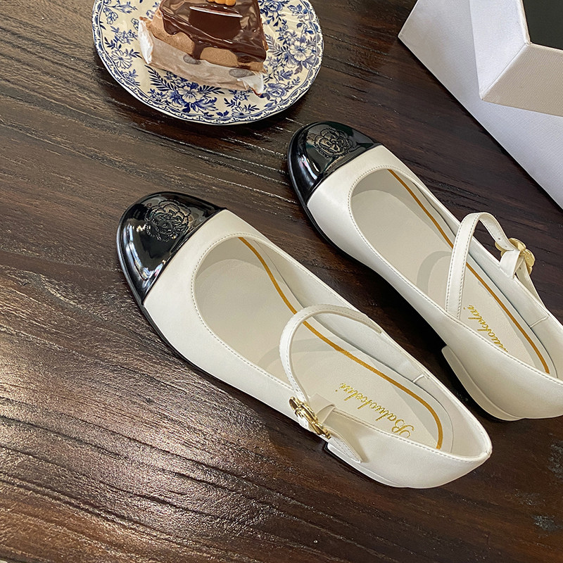 Металлическая пряжка гора камелия маленький ладан ветер, обувь Мэри Чжэнь, низкие каблуки, одно слово с одиночной обувь Легкая рта круглая голова маленькая кожаная туфли самка