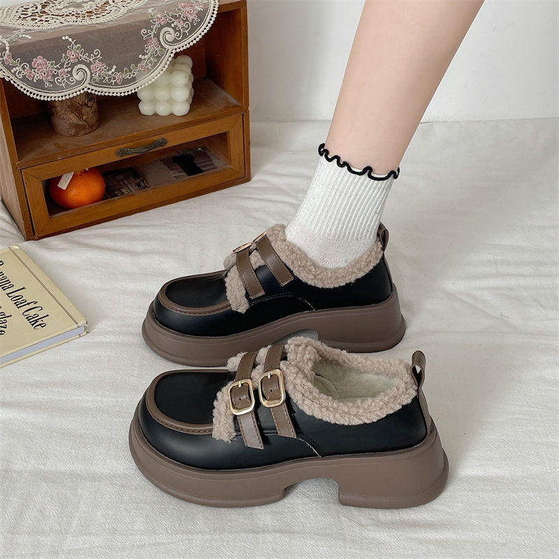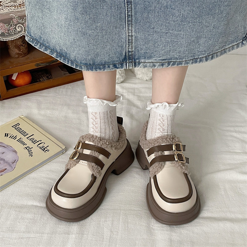 Обувь в английском стиле для кожаной обуви, демисезонные утепленные туфли на платформе, в британском стиле, коллекция 2022