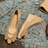 Соломенные небольшие дизайнерские туфли на высоком каблуке с низким вырезом, 2023, тренд сезона