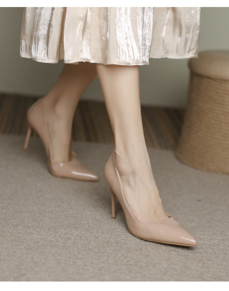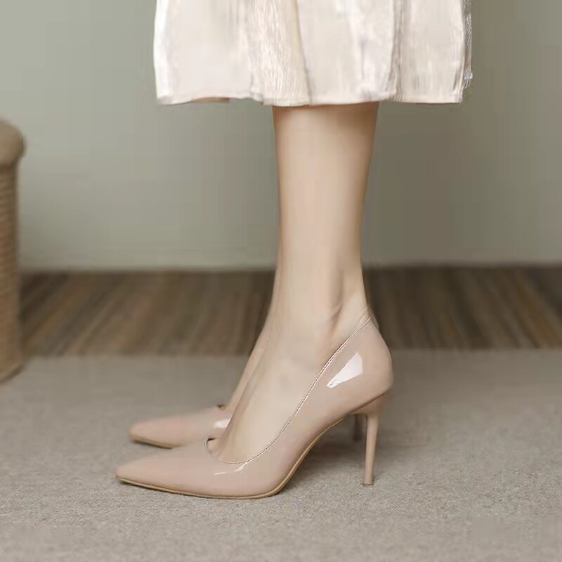 Нюдовое сексуальное демисезонное платье на высоком каблуке, обувь с заостренным носом, коллекция 2023
