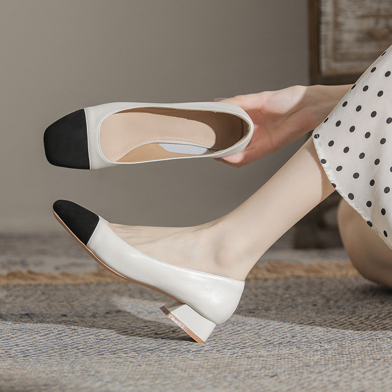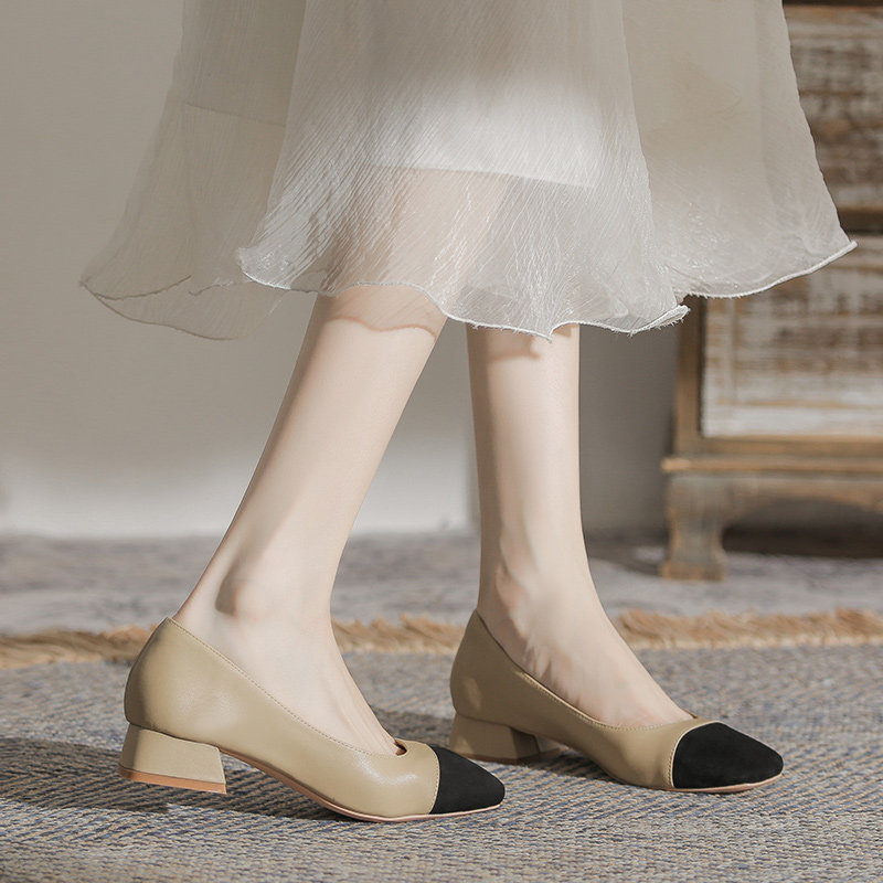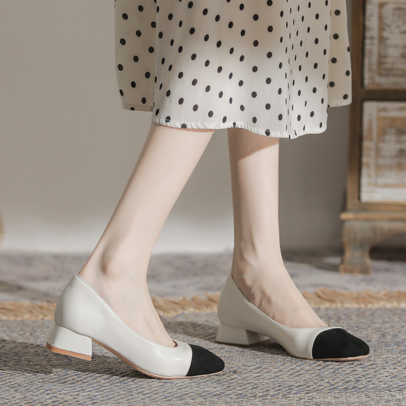 Французские низкие каблуки весна и осенние взрывы одиночная обувь женская женщина 2024 Новая ночная туфли одна накладывает большие размеры обувь 41-43