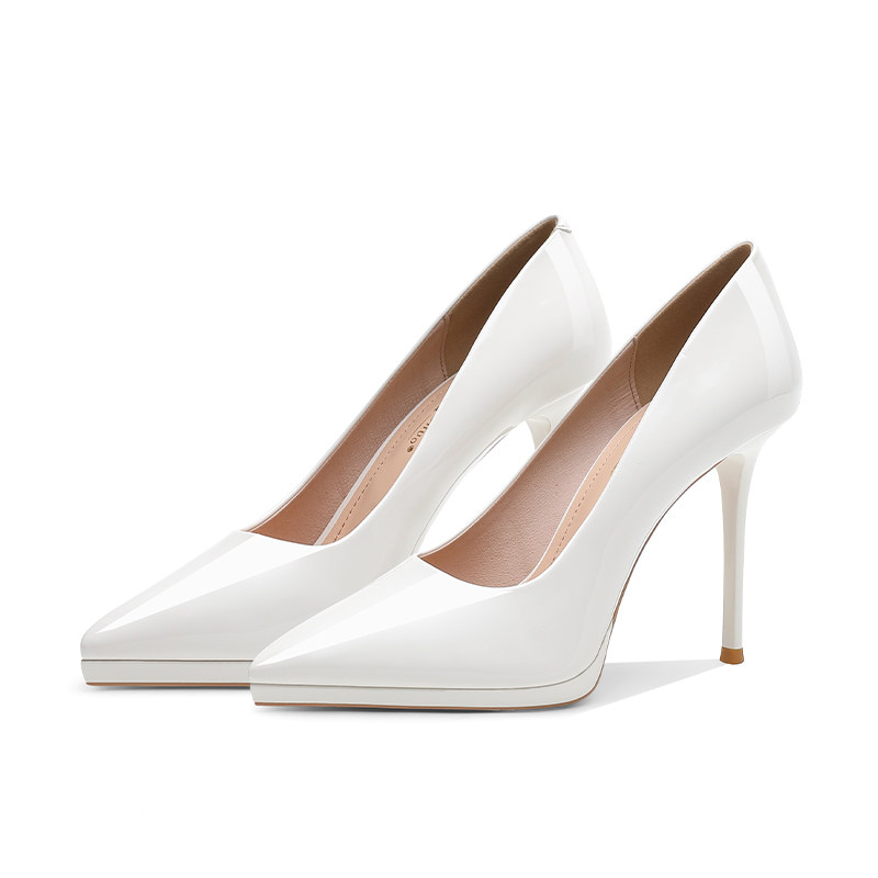 Водонепроницаемая модная обувь на высоком каблуке, весенняя белая униформа медсестры с заостренным носом, 10см, французский стиль