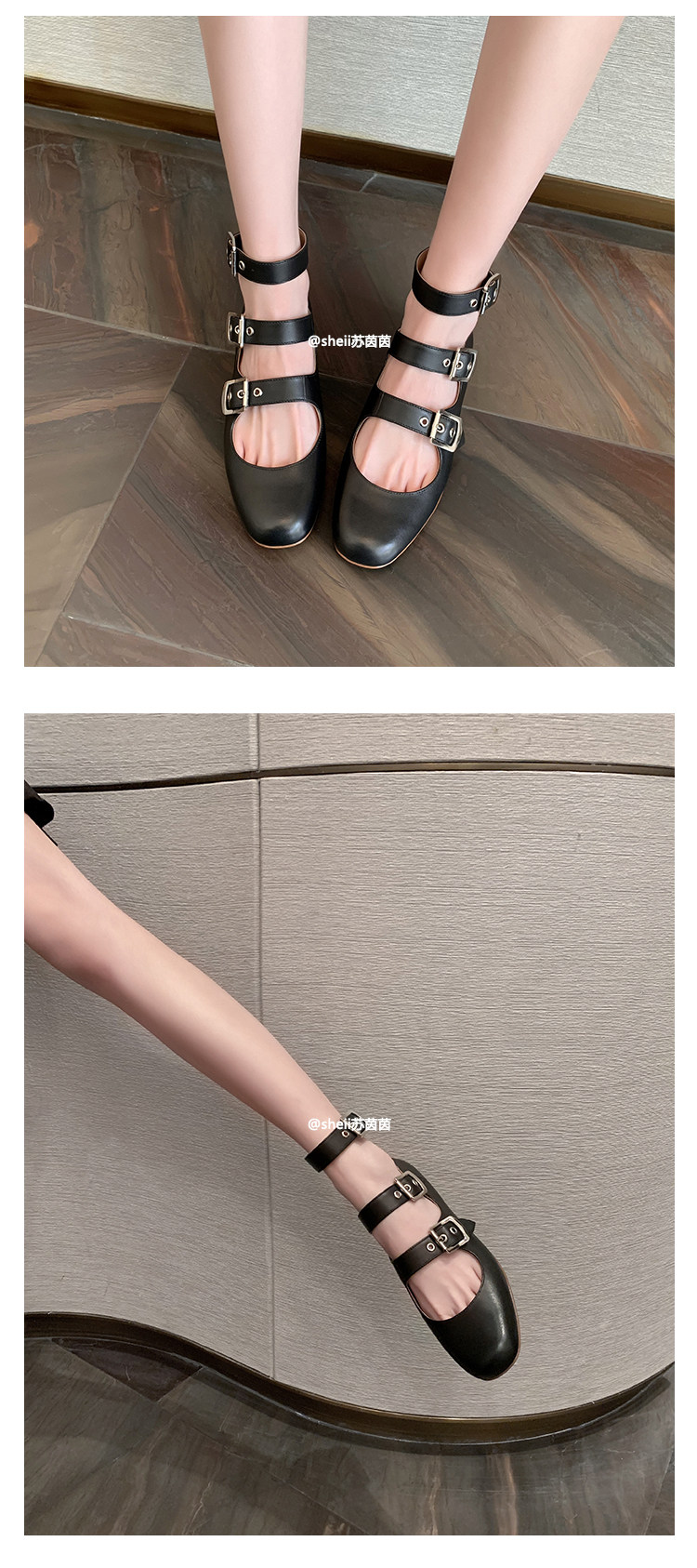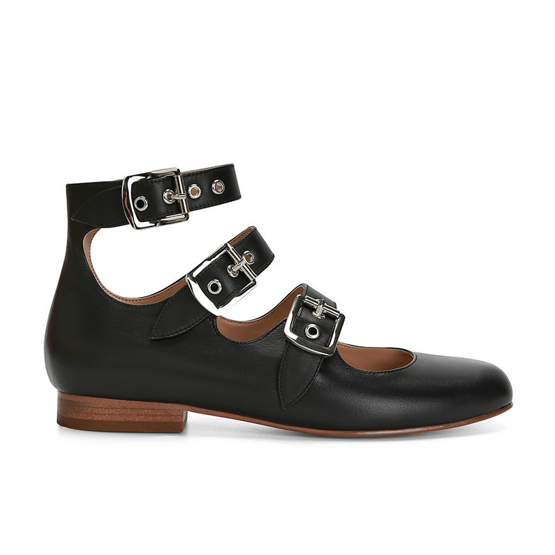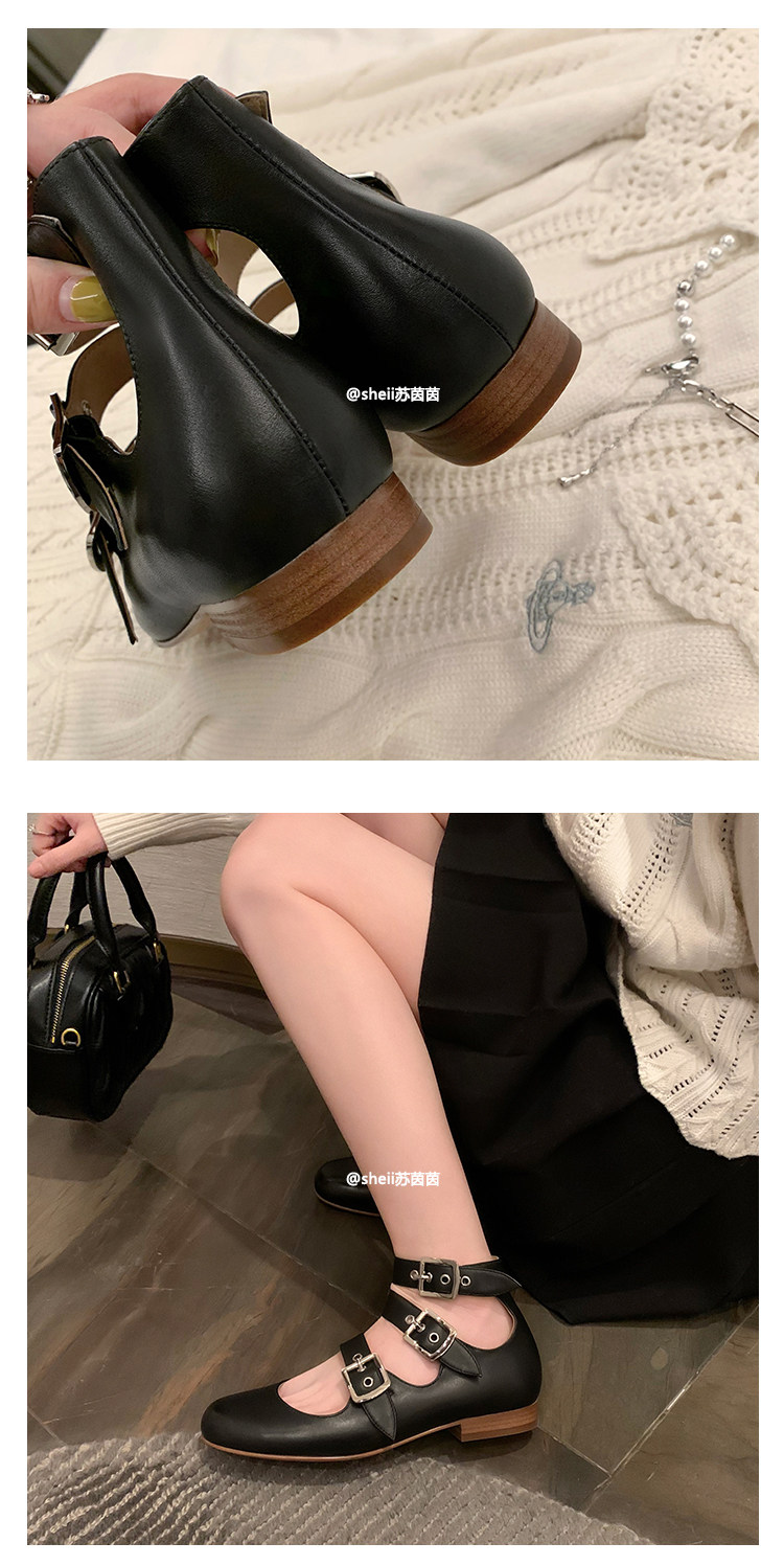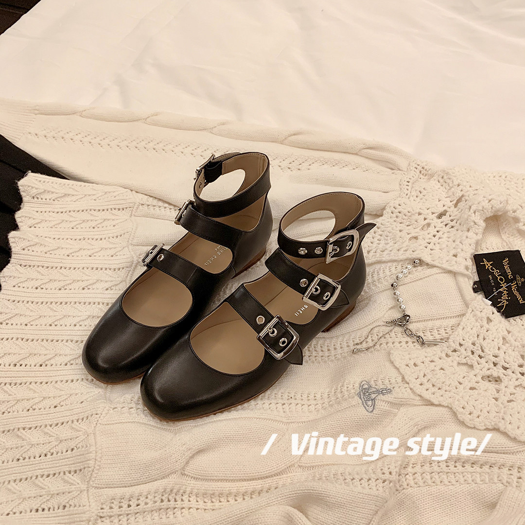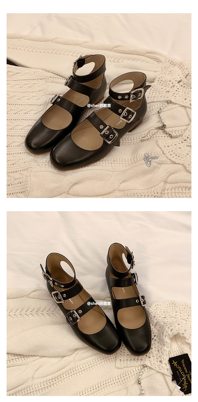 [Sheii Su Yinyin] серия ликвидации ~ Французская ретро -кожаные каблуки с тремя пряжками с обувью Mary Zhen Женская одиночная обувь