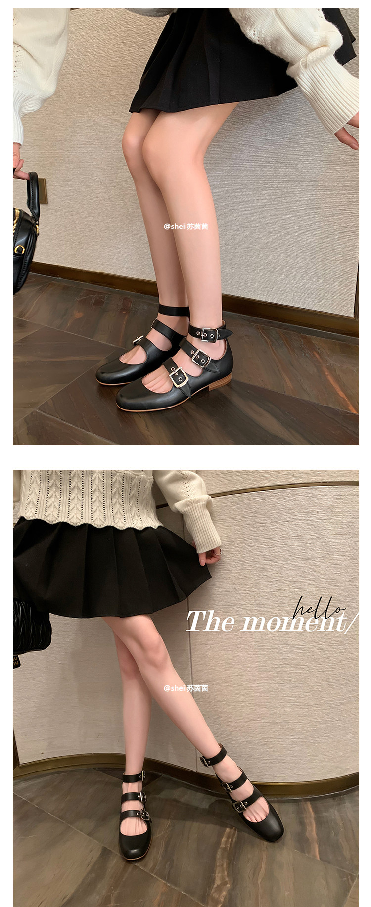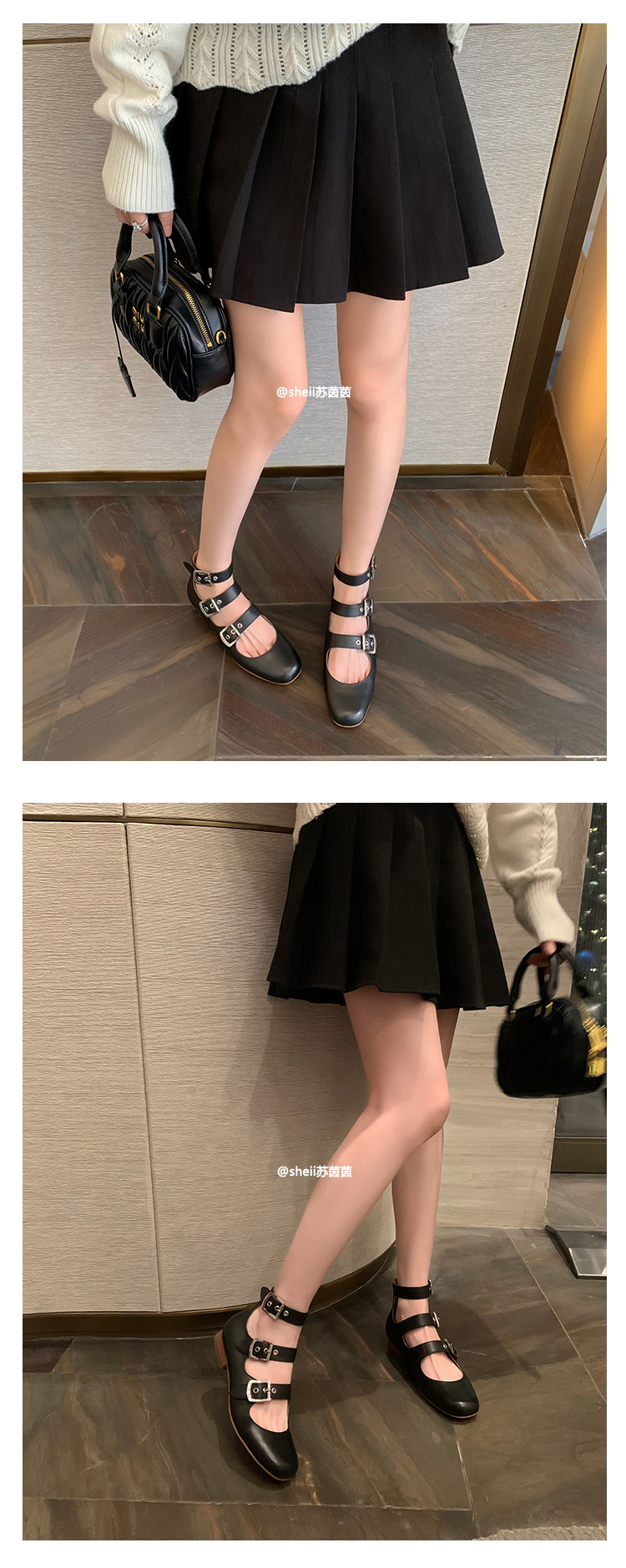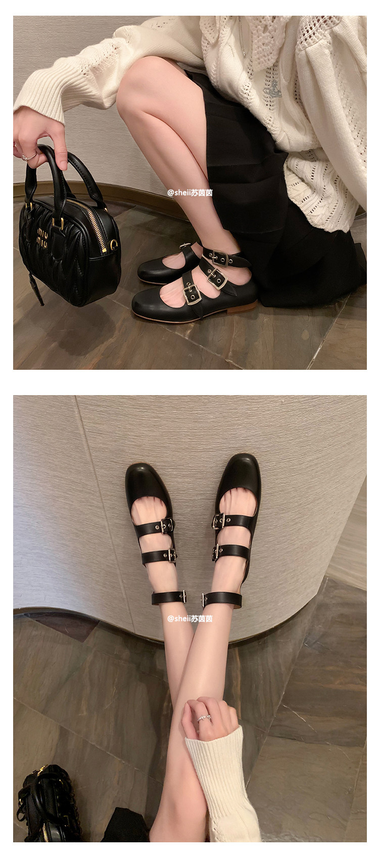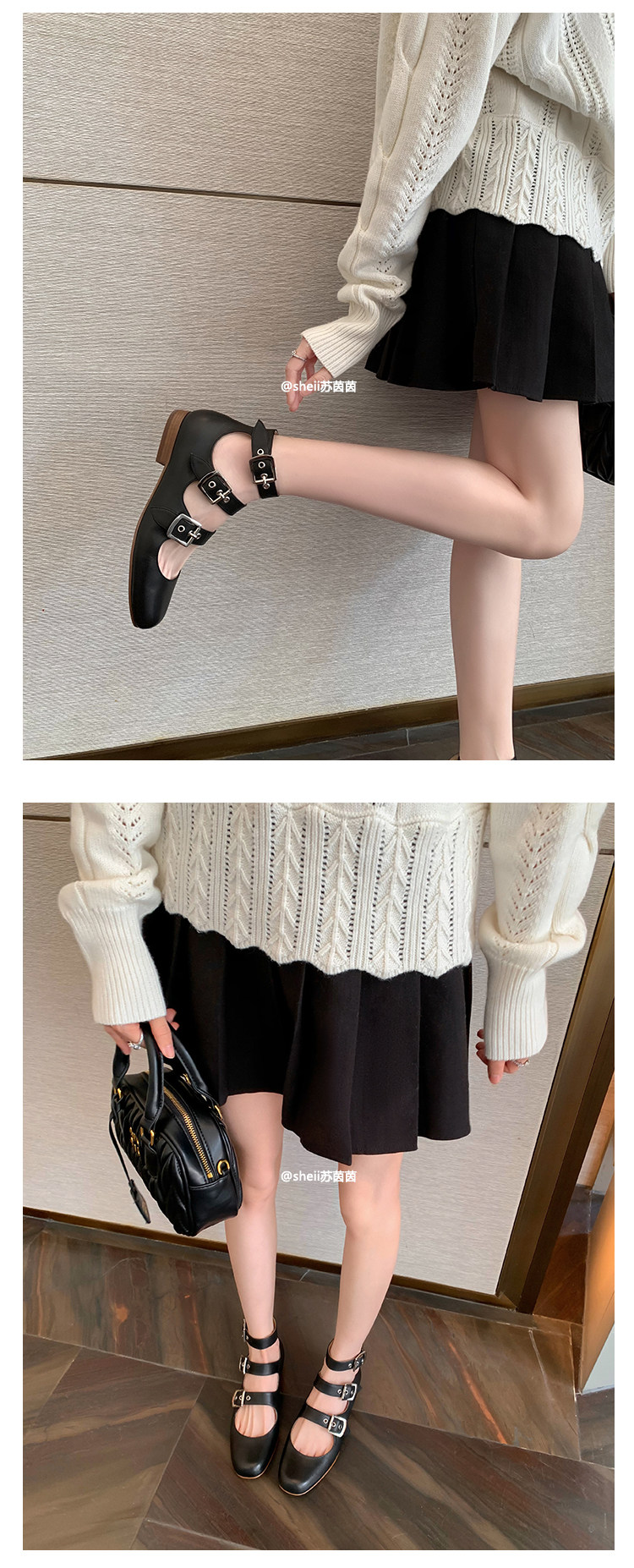 [Sheii Su Yinyin] серия ликвидации ~ Французская ретро -кожаные каблуки с тремя пряжками с обувью Mary Zhen Женская одиночная обувь