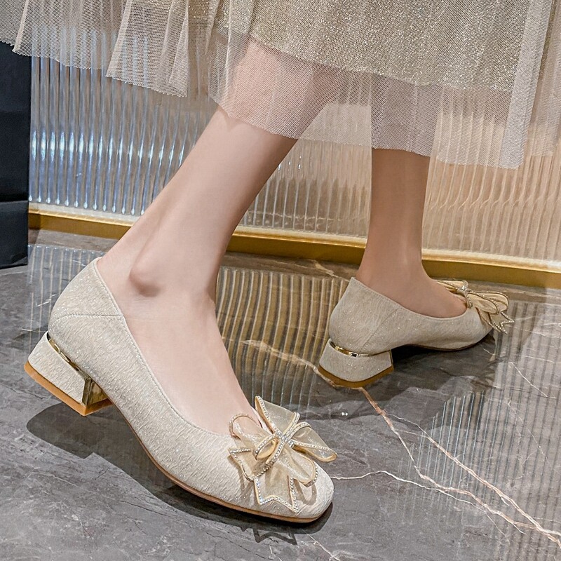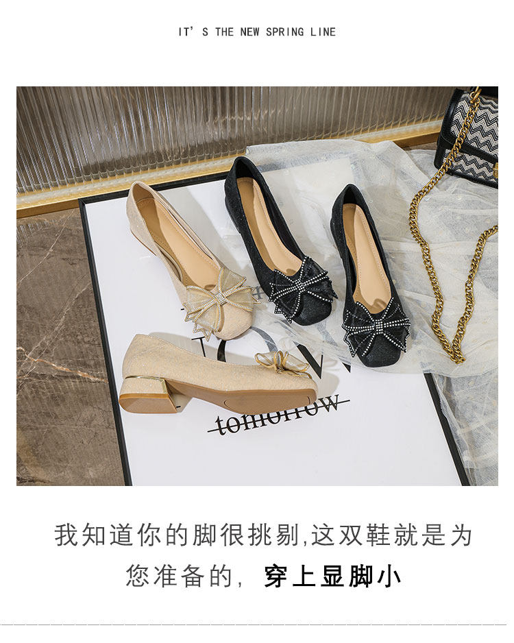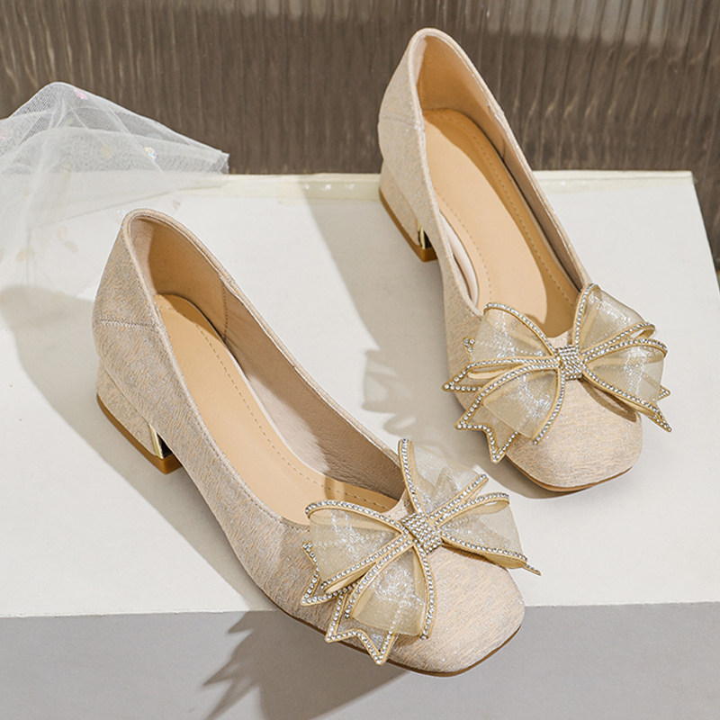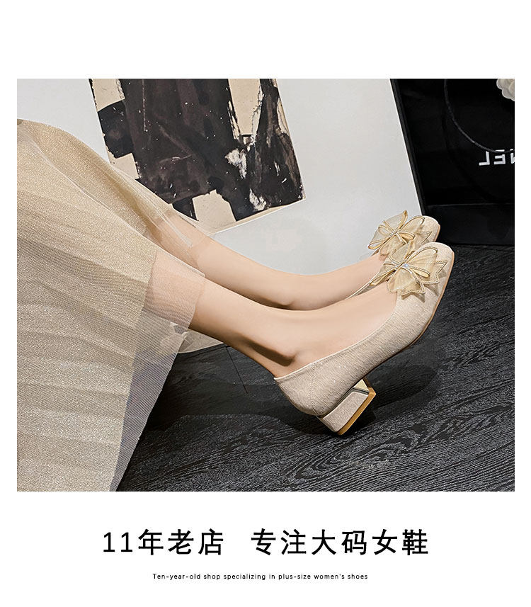 Туфли на толстом каблуке для женщин с неглубоким горлом, новые весенние и осенние туфли, универсальные женские туфли большого размера на низком каблуке и с галстуком-бабочкой в сказочном стиле от 41 до 43.