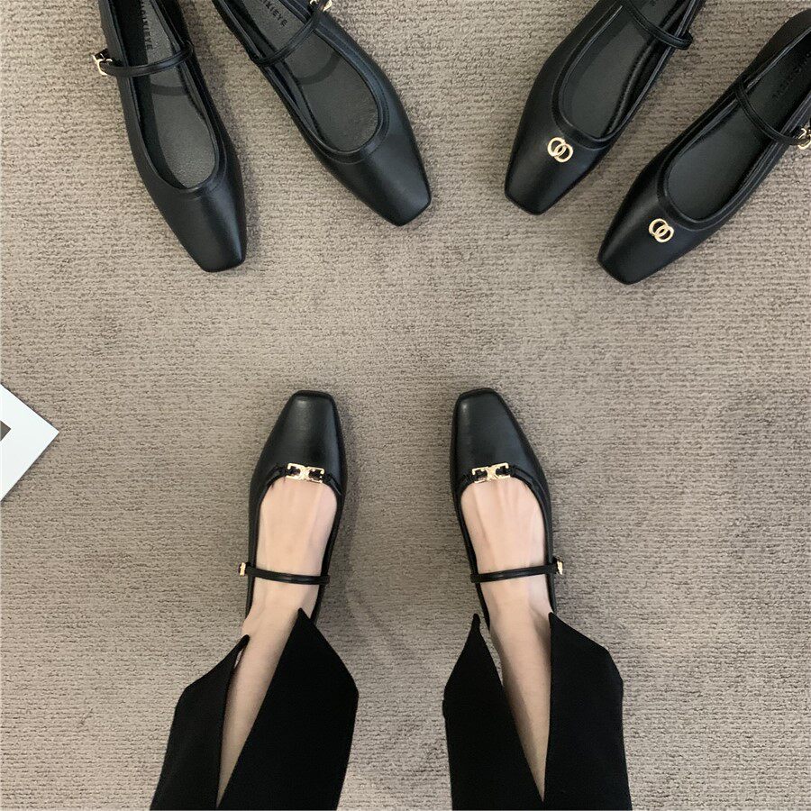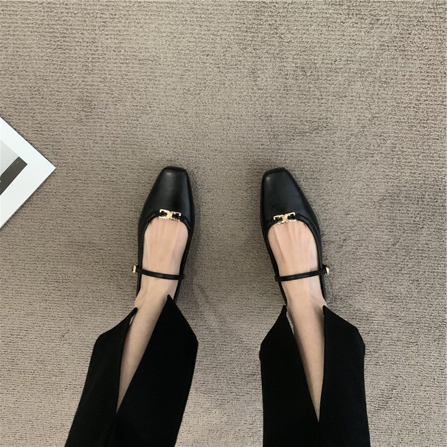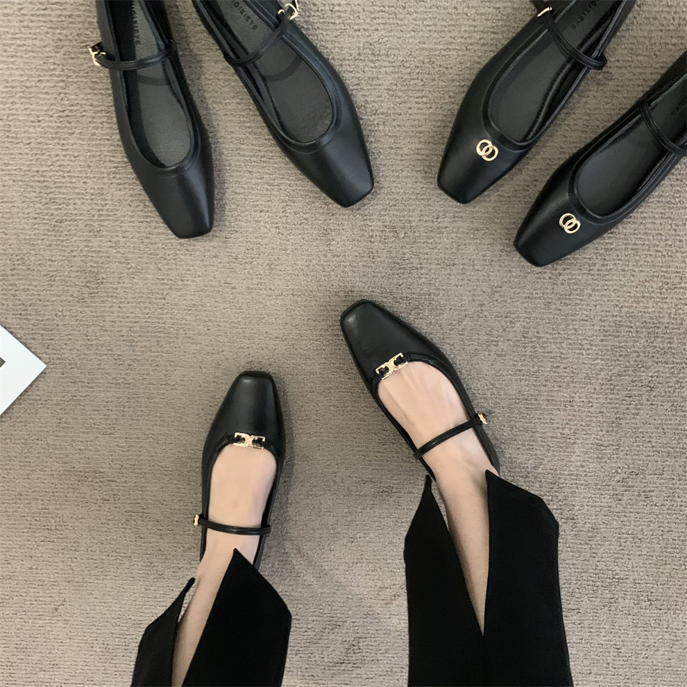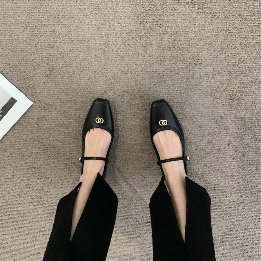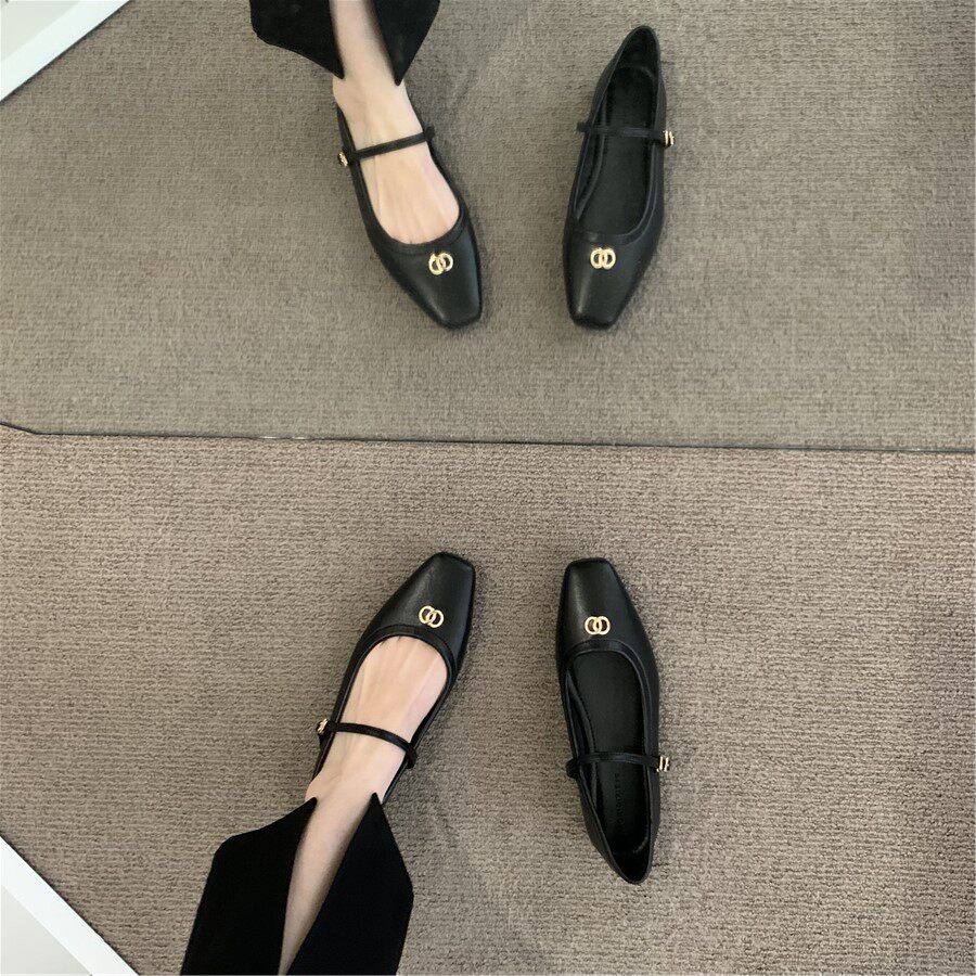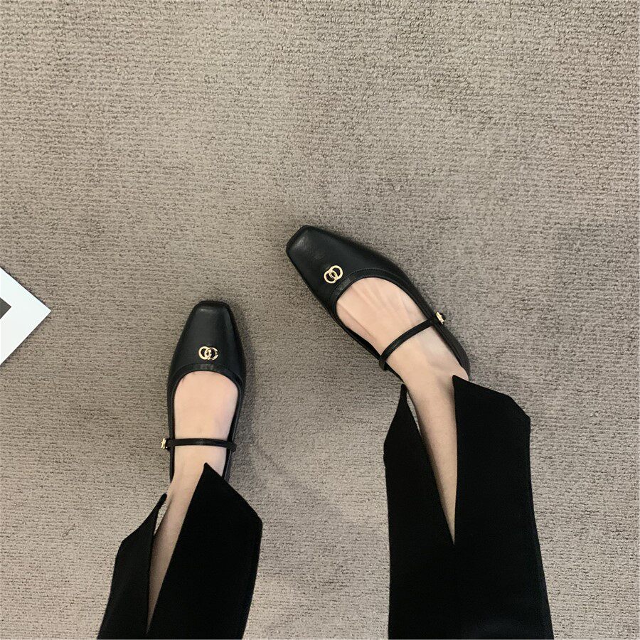 Ретро плоская подошва обувь, черная подходит с юбкой, французский стиль, в стиле Шанель
