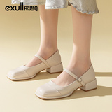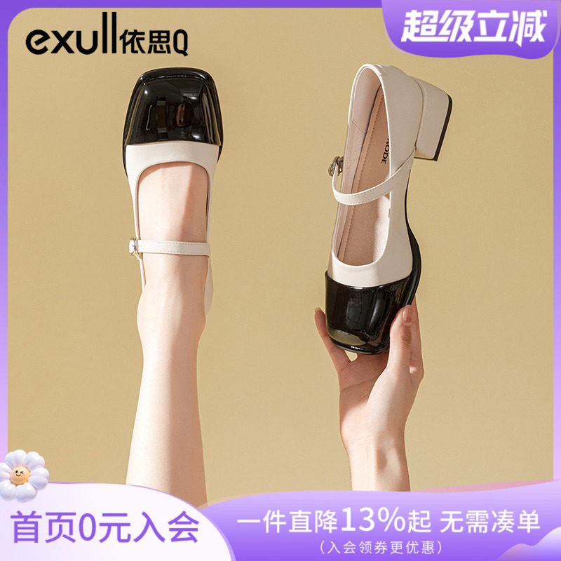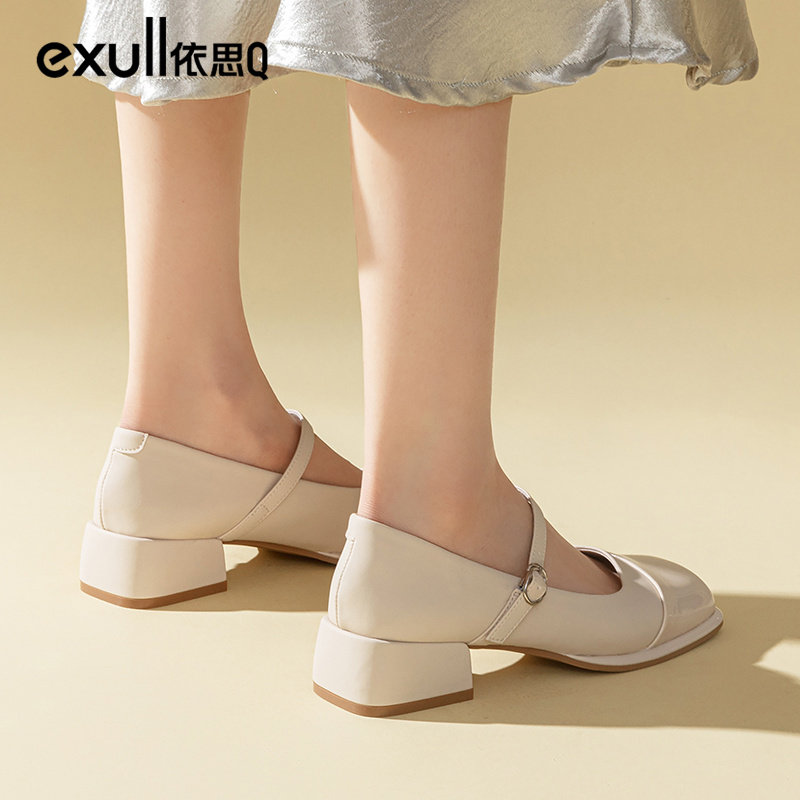 Yisiq Туфли Мэри Джейн, лето 2025, новый стиль, маленькие кожаные туфли с мелким открытым носком и квадратным носком, на толстом каблуке, с пряжкой в одно слово, французские старинные маленькие кожаные туфли