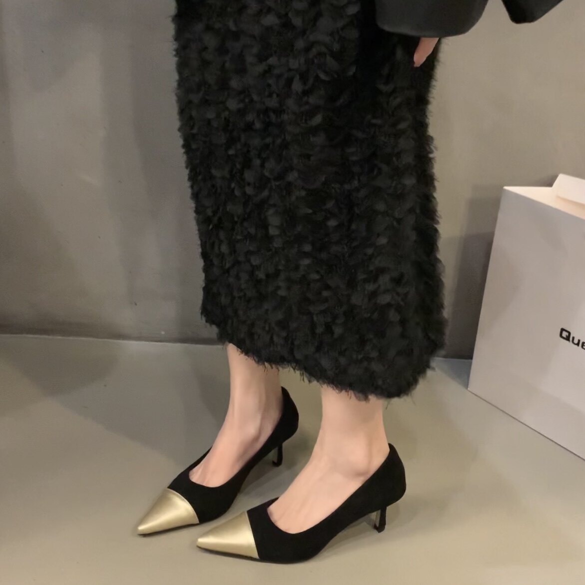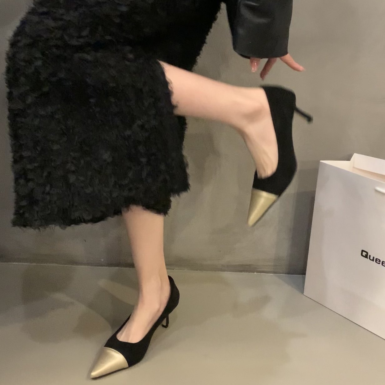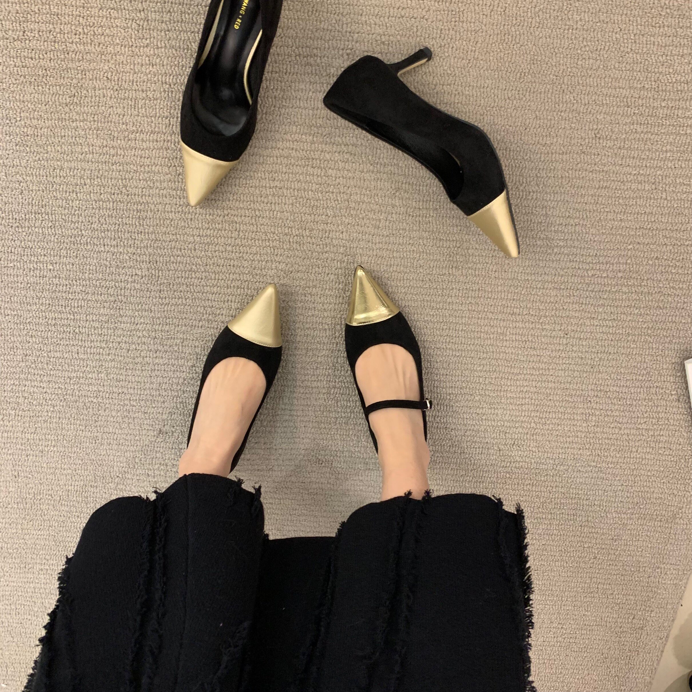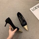 Высокая весенняя обувь с заостренным носом, французский стиль, в стиле Шанель, 2024 года