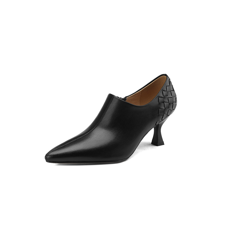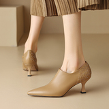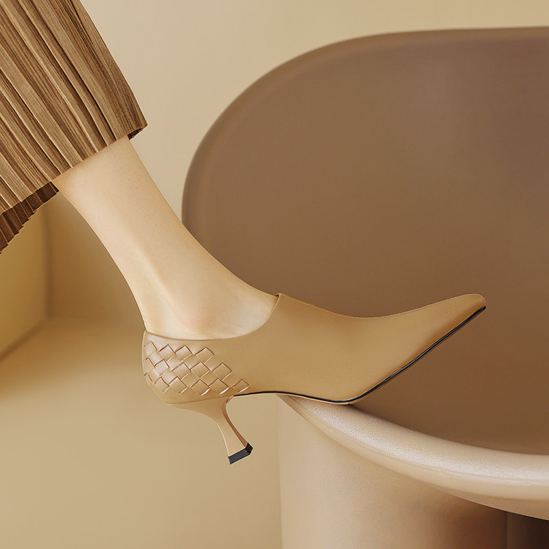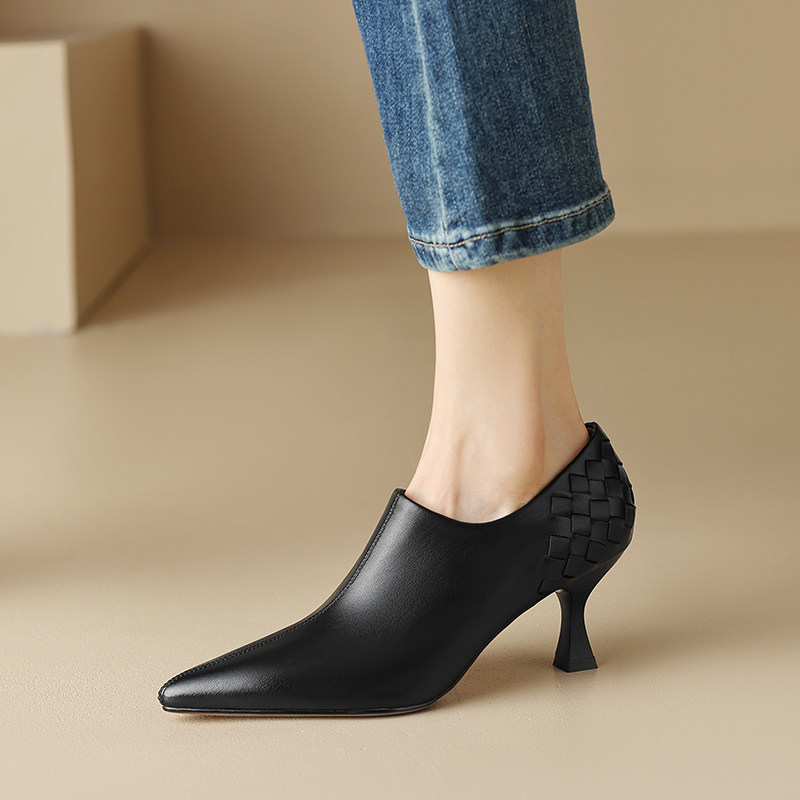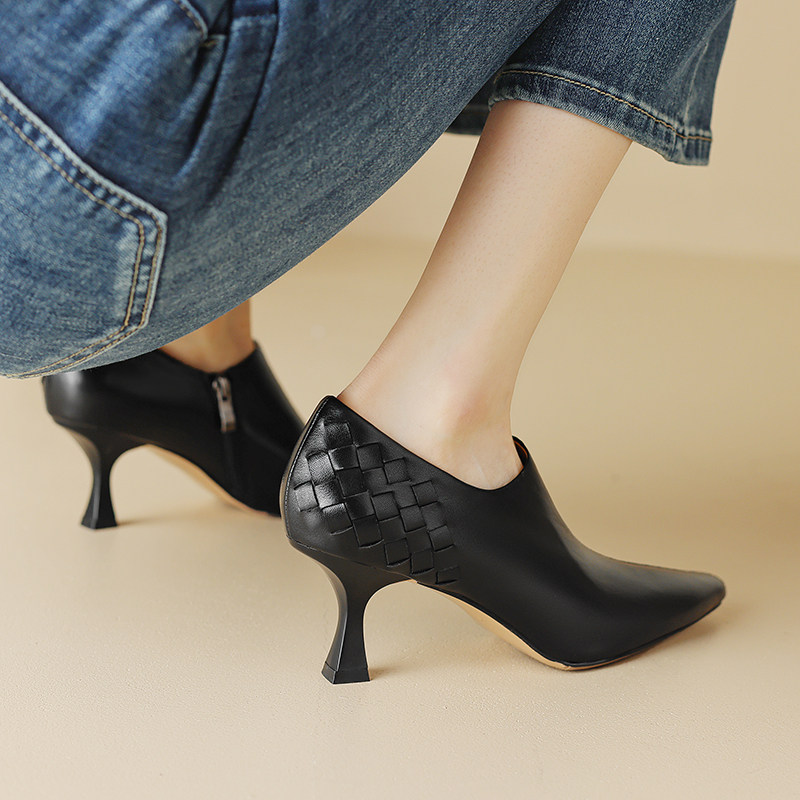 Абрикосовая весенняя обувь на высоком каблуке, плетеные ботильоны с заостренным носом для кожаной обуви, коллекция 2023
